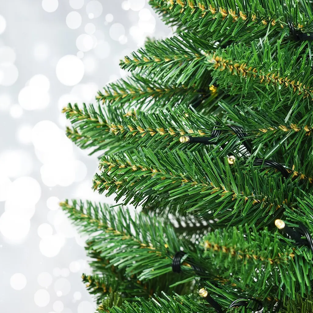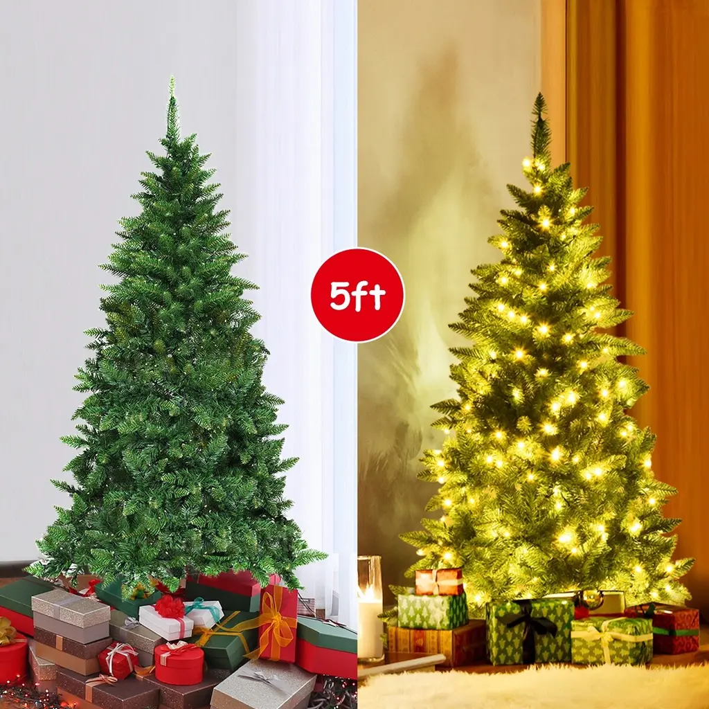 Half Christmas tree creat atmosphere as warm as the full tree.It's tall enough to have a presence yet slim so it doesn't take up much space at all. With chic half tree design, it saves lots of space and also more compact for easy storage. Made of environmentally friendly PVC materials, its needles appears fresh-cut look. Warm white LED lights ith 8 flash modes add eye-catching effect for your families and guests. Excellent in quality, reasonable in price, it is the best pick for you and your families!Features:Study and solid metal stand provides strong support with high stability UL certified plug is professionally tested for safe use Easy to set up and storage, assembly take up few minutesColor: Green Material: PVC + Iron Overall Dimensions: 1.1'x 5'(D x H) Number of Tips:290 Number of LED: 250 Net Weight: About 6lbs Package Includes: 1 x Half Christmas Tree 1 x Stand