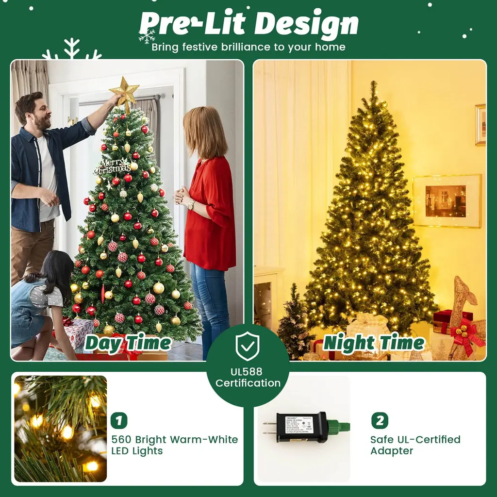 Gymax 6/7/8 Ft Pre-Lit Artificial Christmas Tree Hinged Xmas Tree W/ - 6 Foot