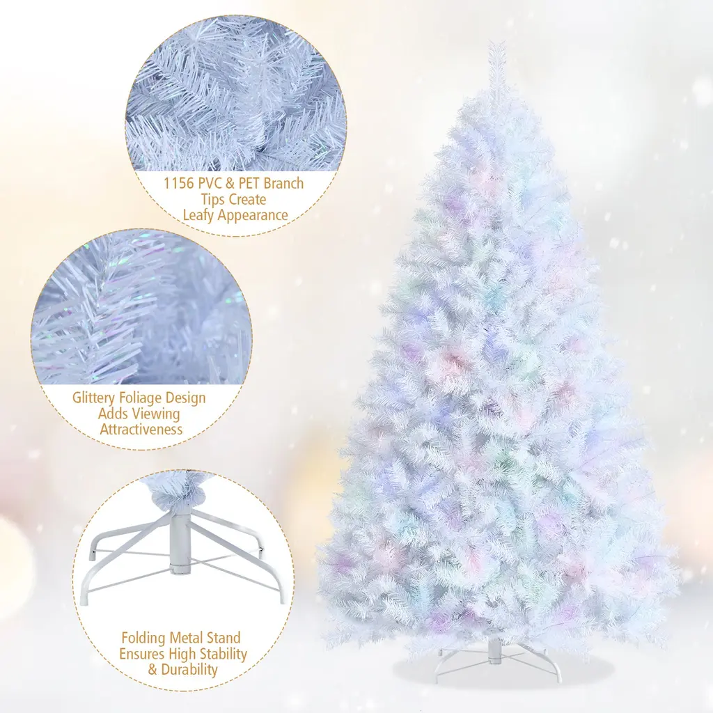 Gymax 6/7/8 Ft White Artificial Christmas Tree Hinged Unlit Iridescent - 7 Foot