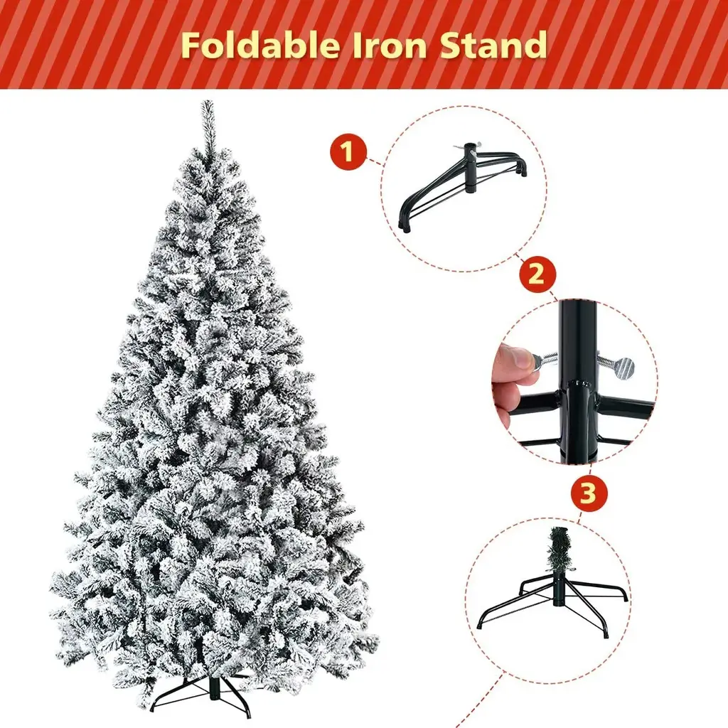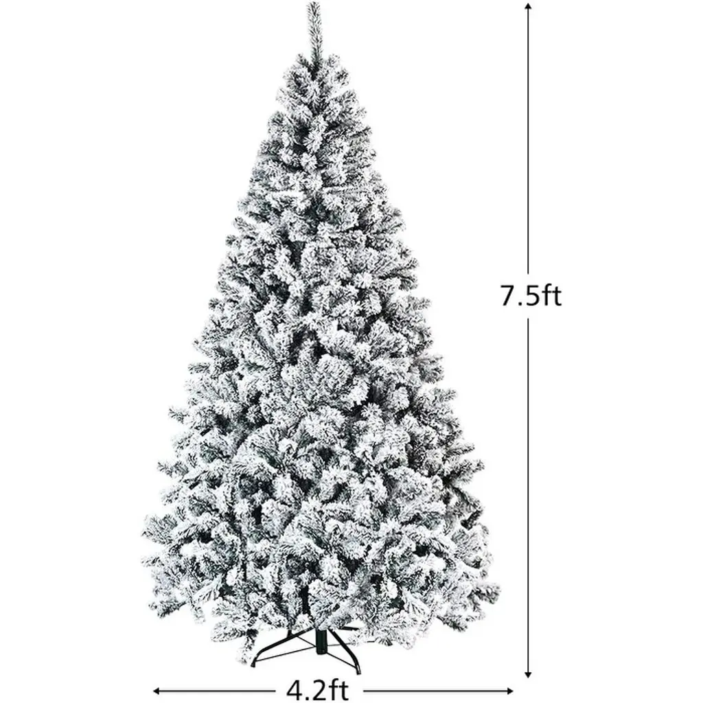 Gymax 6Ft/7.5ft/9ft Snow Flocked Hinged Artificial Christmas Tree - See Details - 7.5 Foot