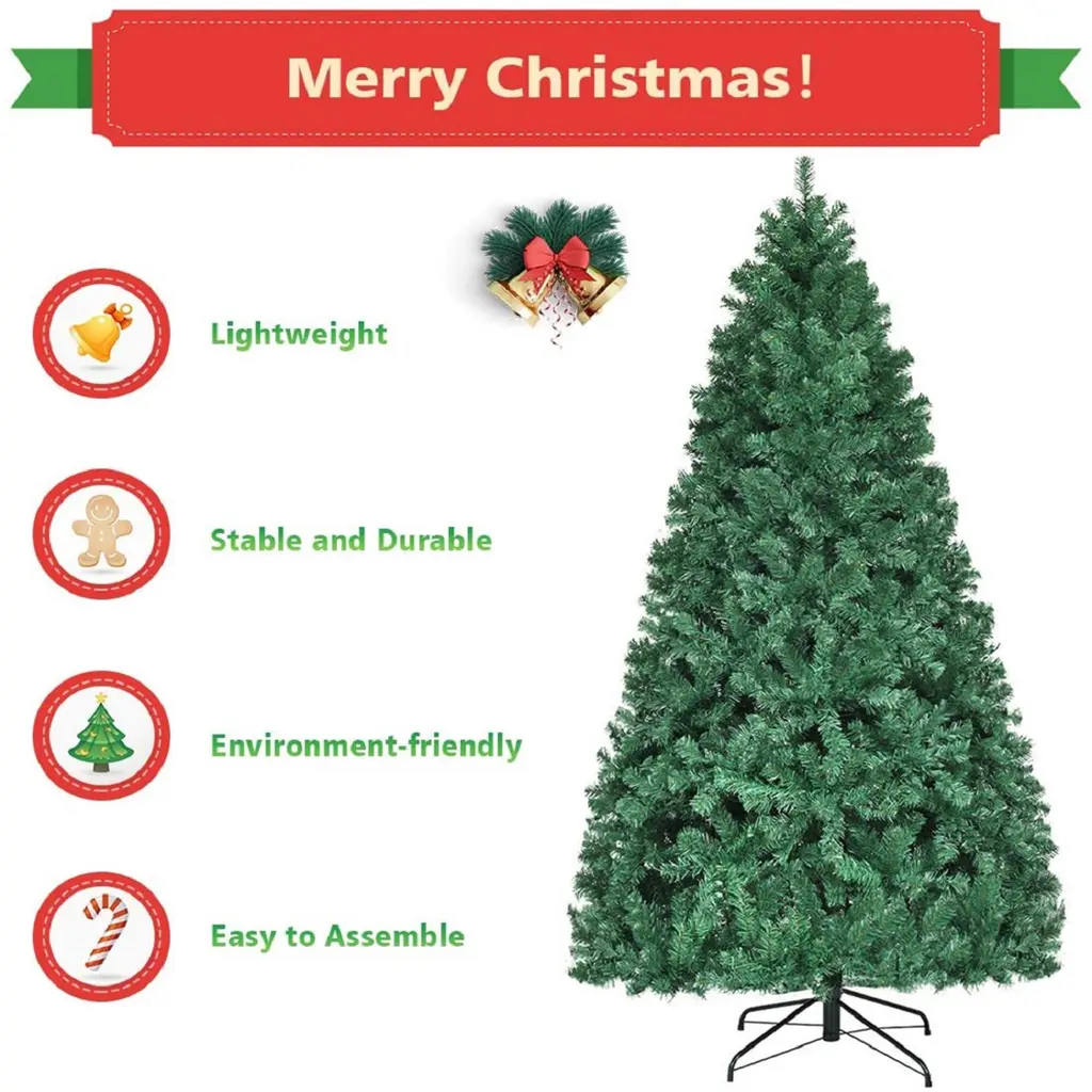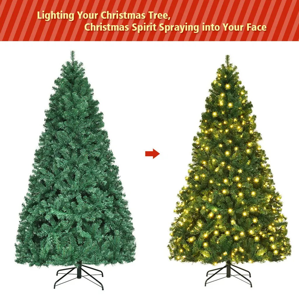 Decorate your home with our pre-lit Christmas tree to embrace the warm festival feeling! This 7.5 ft artificial tree is designed with hinged structure to make the assembly easy. You can feel the coming of the festival quickly. Made of premium PVC needles, the tree is realistic and has long lifespan. Sturdy metal stand will offer good support to keep the tree upright. 400 warm white LED lights make this tree looks attractive and glamorous when it shines and brings warmth to the cold winter. With 1346 branch tips, it give you a full and realistic look. This Christmas tree will be an eye-catching addition anywhere!Features:4 tree trunks with hinged branches for quick assembly and easy storage Equipped with a metal stand to ensure strong support for the tree High quality PVC material helps to simulate realistic appearanceColor: Green Material: PVC + PE + Iron Overall Size: 4.3' x 7.5' (Dia x H) Net Weight: 19 lbs Input: 120V 60HZ Output: 29V 209mA Power: 6W Adapter: UL-certified Number of Lights: 400 Number of Tips: 1346 Package includes: 1 x Christmas Tree 1 x Stand 1 x Adapter 1 x Instruction