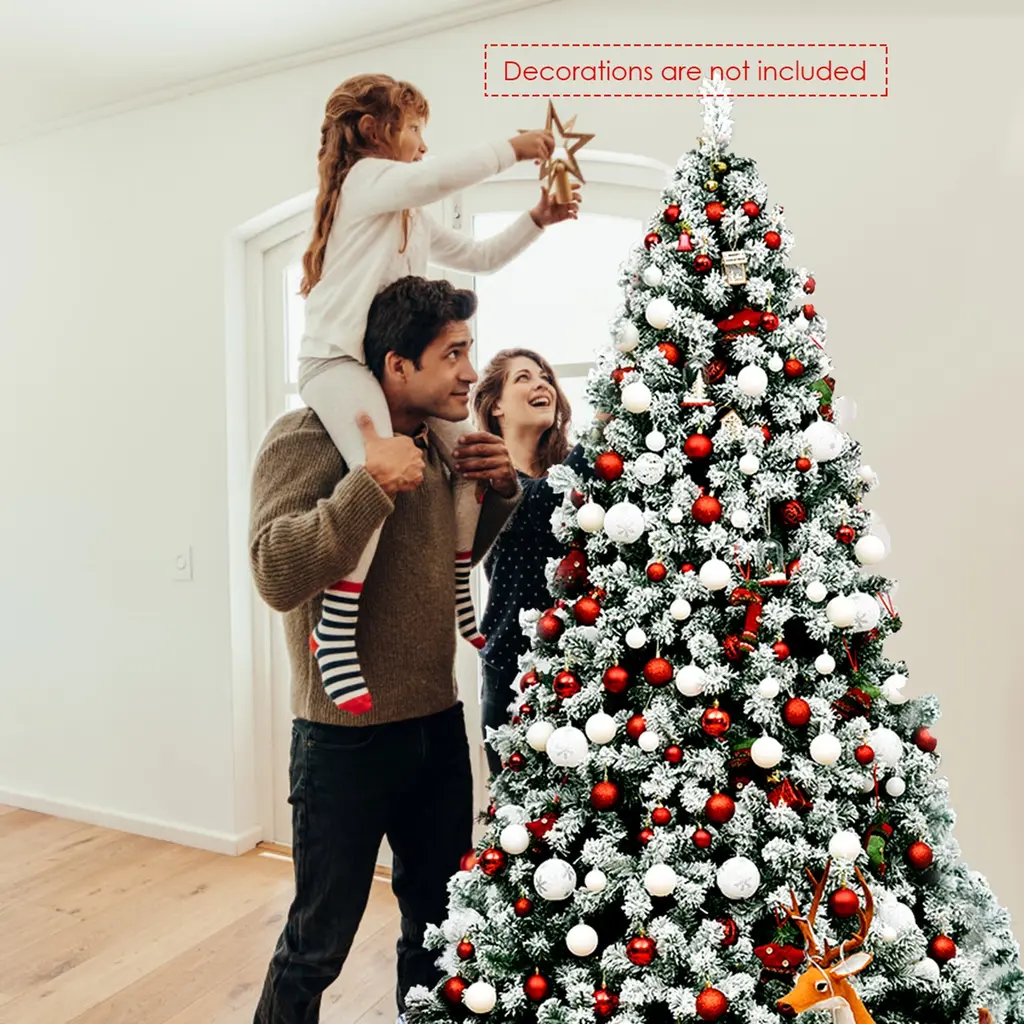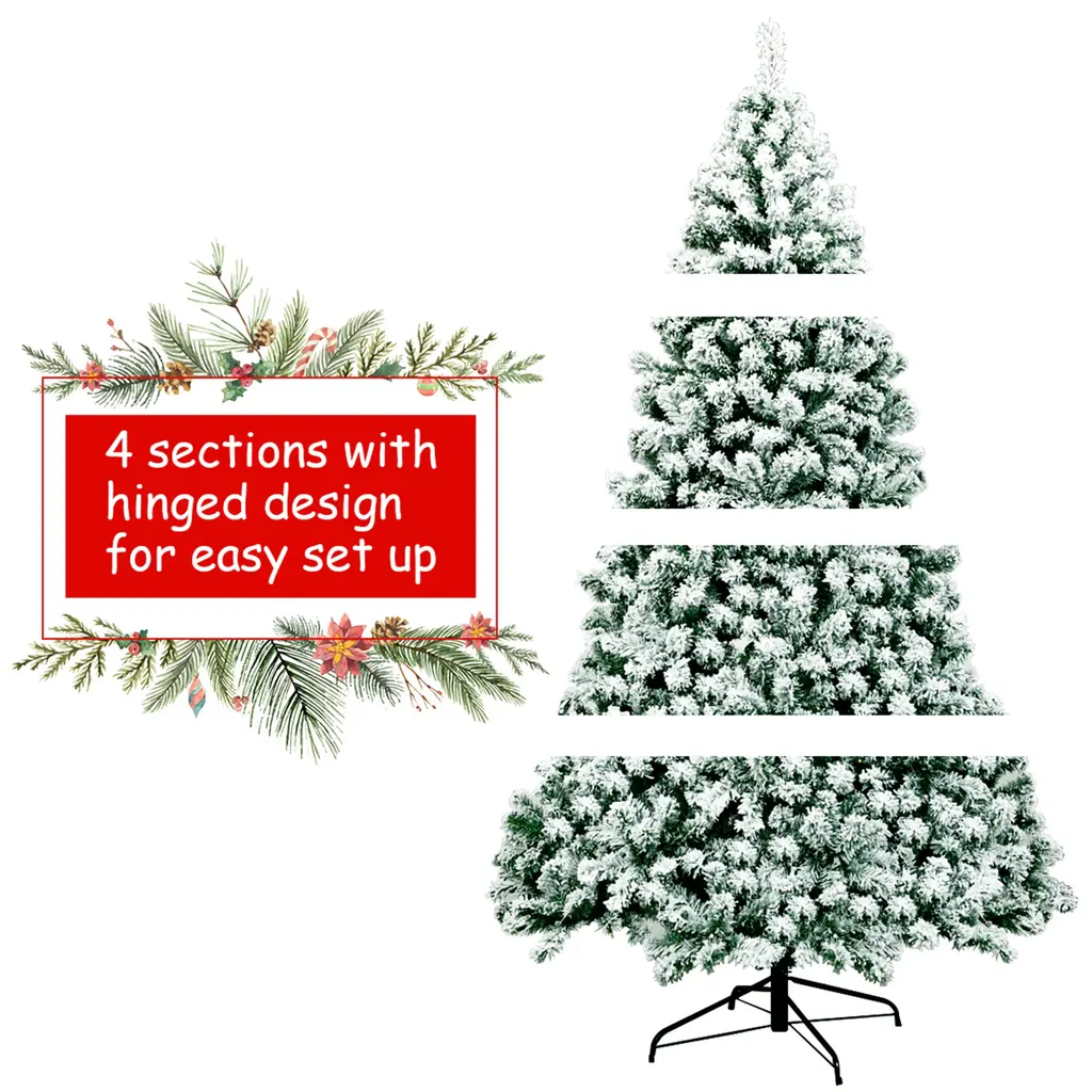 Christmas is coming. May you be happy, healthy, sweet and happy! This pre-lit artificial Christmas tree is used for improving the festive atmosphere and decorating your home with festive joy. The snow flocked leaves of our Christmas tree are made from high quality PVC material, which not only make the tree looks more real, but also add the anti-crush capacity to the tree. Warm white LED lights decorated along the lush branches to create a merry and jolly atmosphere. Through a quick and simple assembly process, it can create a warm festive atmosphere, so that you can easily prepare for Christmas. You don't have to worry about carrying the whole piece home after the celebration, just disassemble it and pack it simply. Then it can bring you more fun in the next year!Features:Made of PVC to enhance its pressure resistance Snow flocked branches add more festival fun It is suitable for the living room, shop and officeMaterial: PVC & Metal Height: 7.5FT Net Weight: 29 lbs Base: 4.5FT Number of Tips: 1346 Number of LED Lights: 550 Package includes: 1 X Pre-lit Christmas Tree 1 X Metal Stand