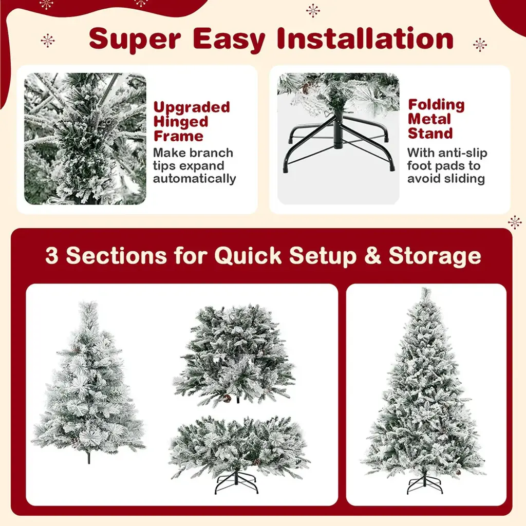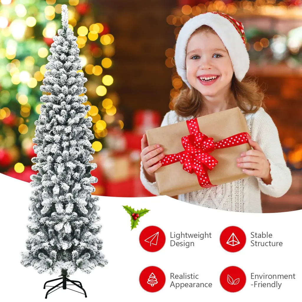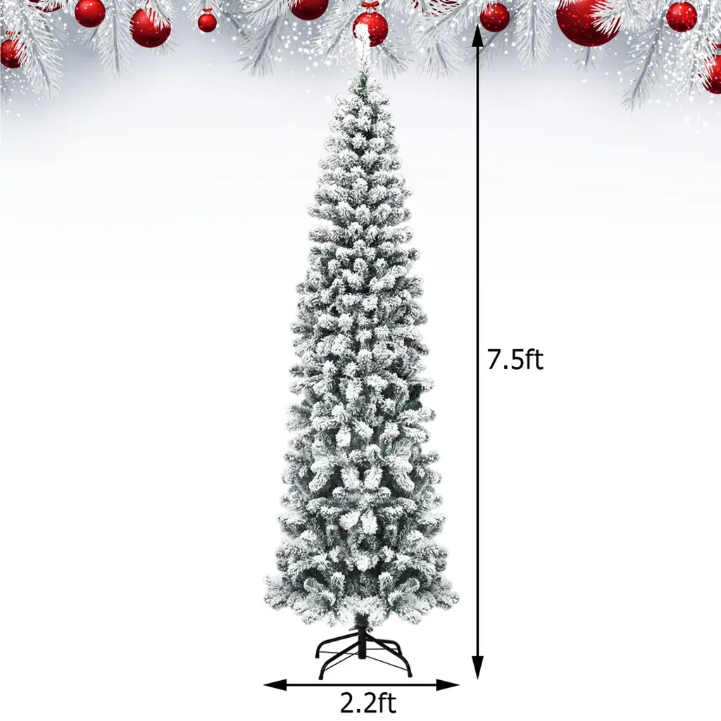 Gymax 7.5ft Snow Flocked Pencil Christmas Tree Artificial Pine Tree W/ - See Details - Multi - 7.5 Foot