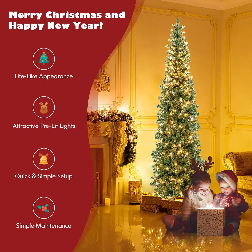 Our Christmas tree cleverly combines a life-like appearance and a compact size. The special half shape saves a lot of spaces,which is perfect for small rooms. Also,it comes with 450 branch tips for great vibrancy,while they are made of new PVC with good fire,fade and allergy resistance. Meanwhile,the artificial decoration tree has 150 warm white lights,attracting a lot of attentions and delighting your guests. The whole tree can be disassembled into 3 sections and a folding metal stand,which is convenient for storage. Finally,it's a fantastic holiday addition to your home,office,shop and carnival. With included lights and a fuse for spare,you can reuse the Christmas tree for years.Features:Equipped with an authoritative UL588 certification Slim half tree to perfectly fit in a corner space A full-bodied appearance composed of 450 branch tipsColor: Green Material: PVC,Metal Overall Dimensions: 2 ft x 7 ft (Dia. x H) Diameter of the Metal Stand:16 inch Number of Branch Tips: 450 Number of Lights: 150 Number of Sections: 3 Net Weight: 7.5 lbs Package Includes: 1 x Half Christmas Tree 2 x Replaceable Mini Incandescent Lights 1 x Replaceable Fuse 1 x User's Manual