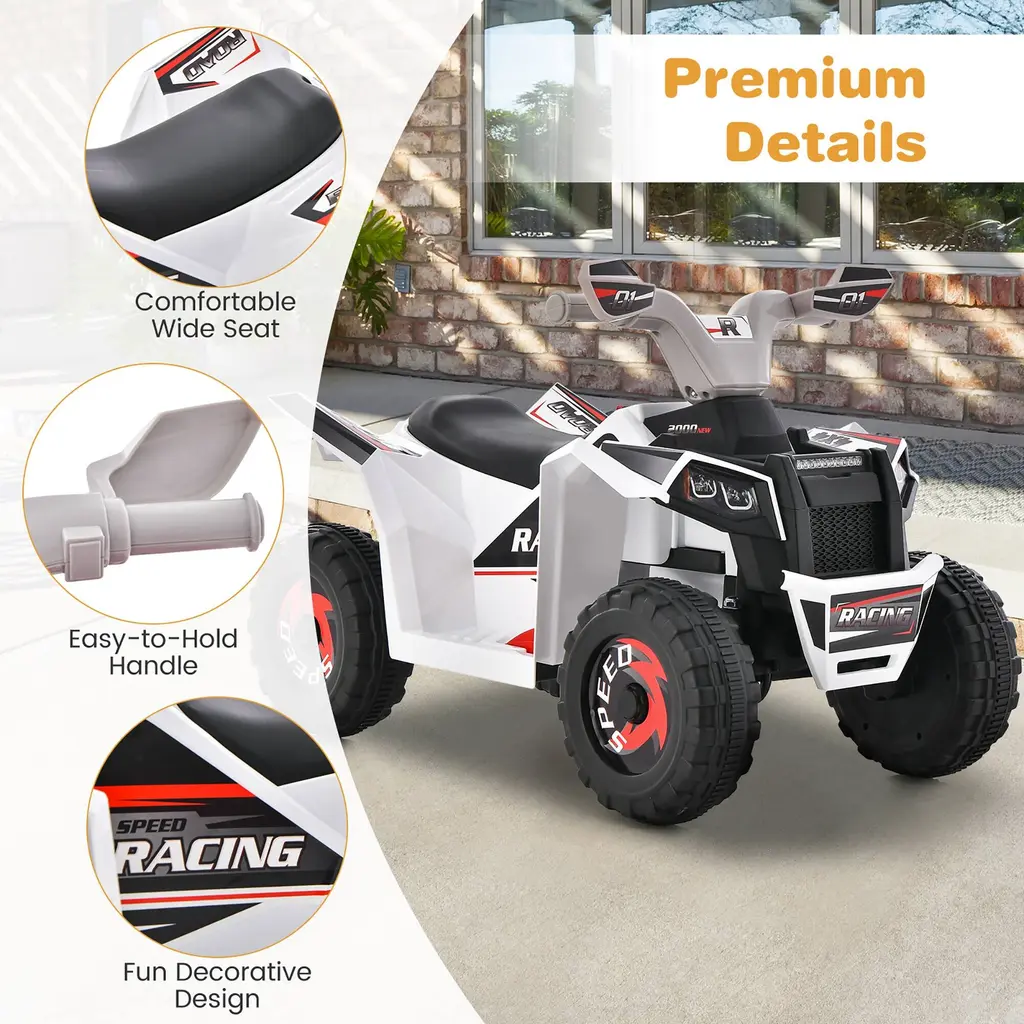 Gymax Kids Electric Ride On Atv Toy 6V Battery Powered Electric - White