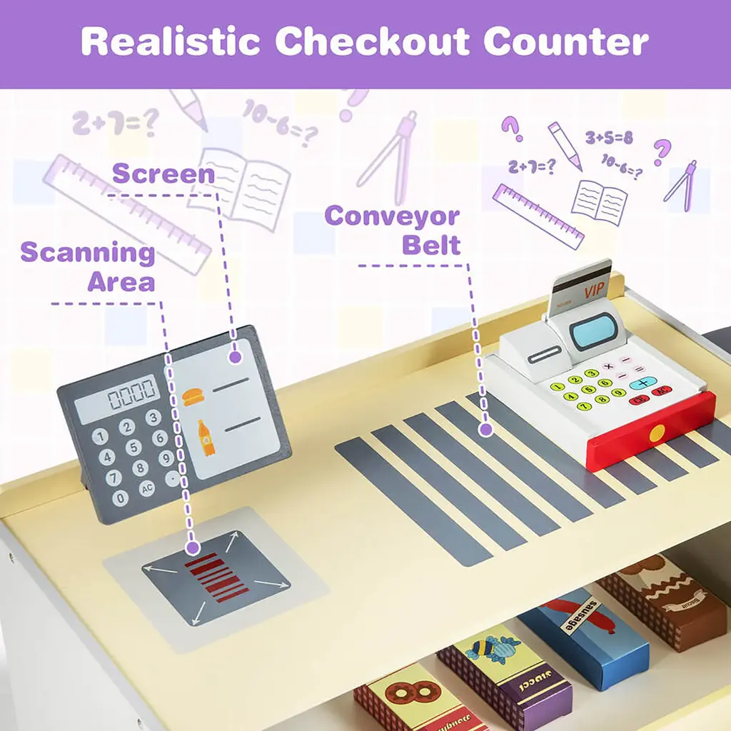 Gymax Kids Wooden Grocery Store Playset W/ Realistic Checkout Counter - Grey