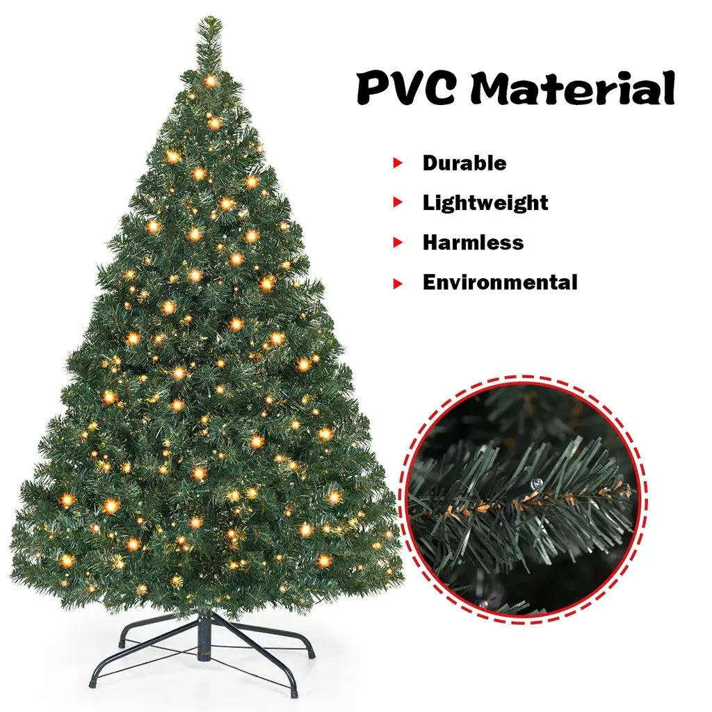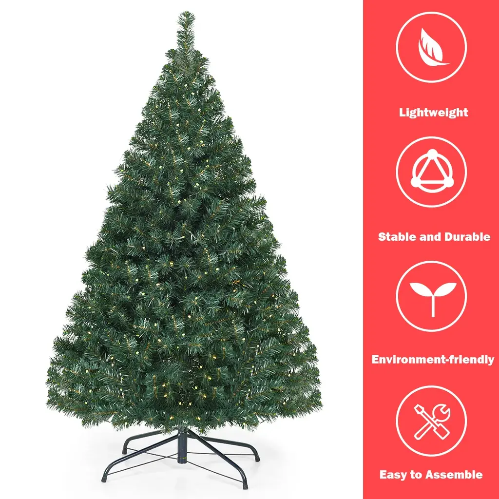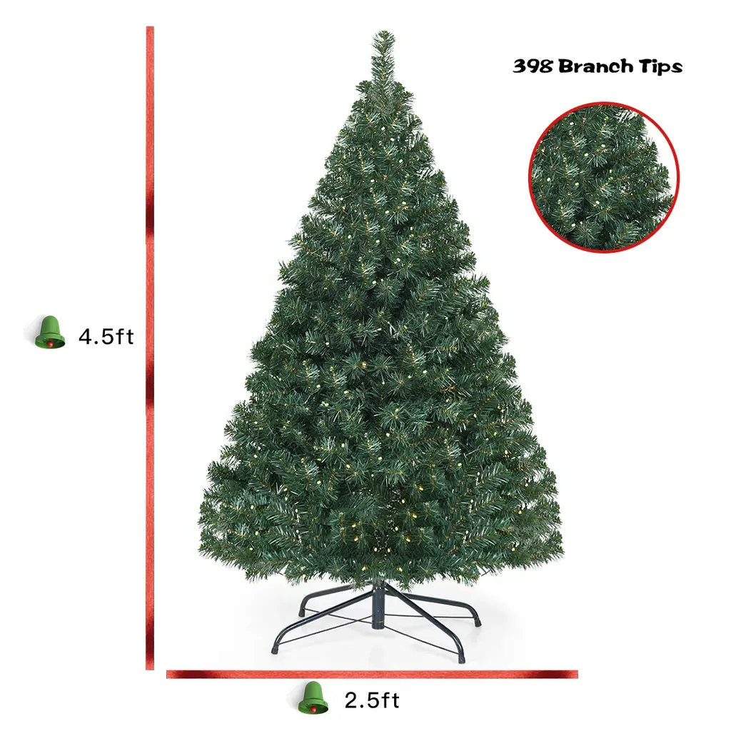 Gymax Pre-Lit 4.5ft Christmas Tree Hinged Artificial Pvc With Led - Green - 4.5 Foot