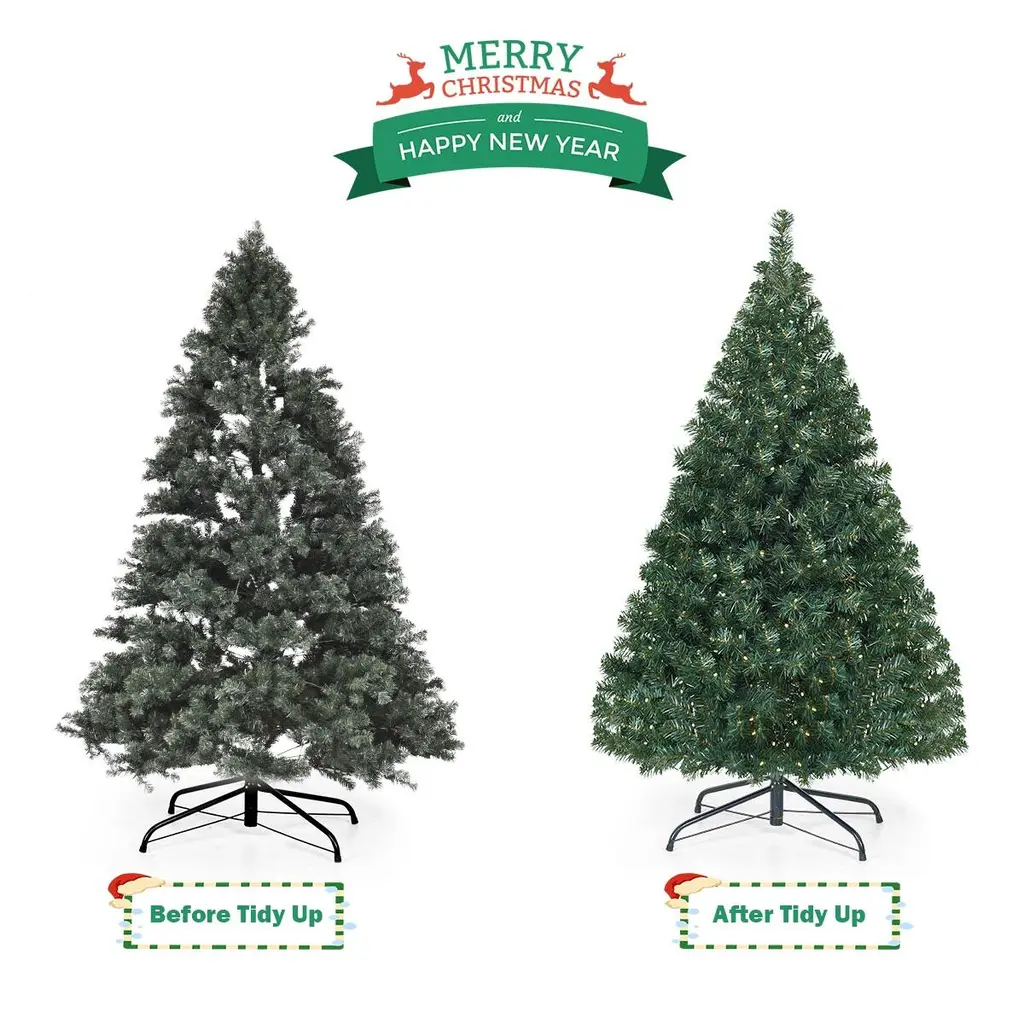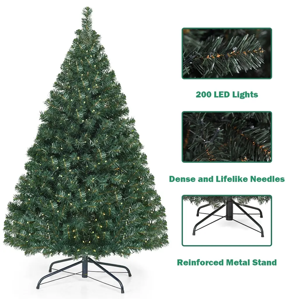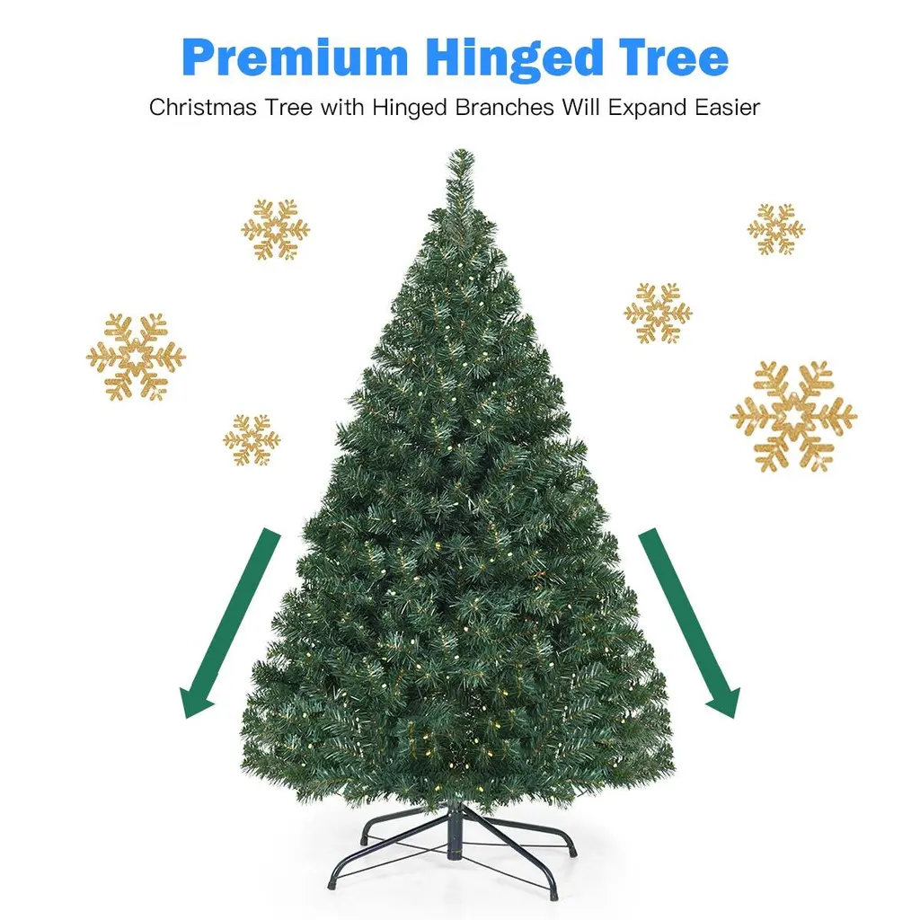 Gymax Pre-Lit 4.5ft Christmas Tree Hinged Artificial Pvc With Led - Green - 4.5 Foot