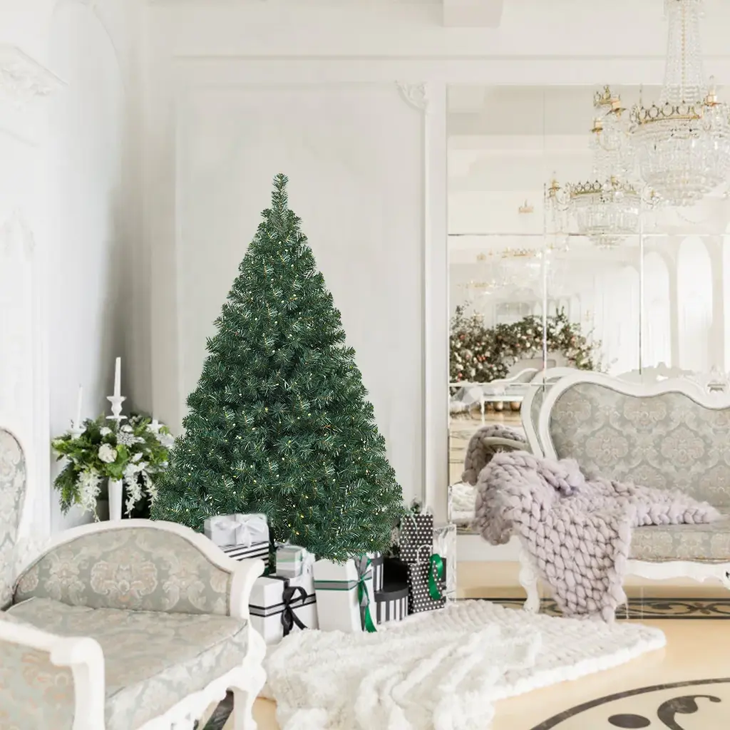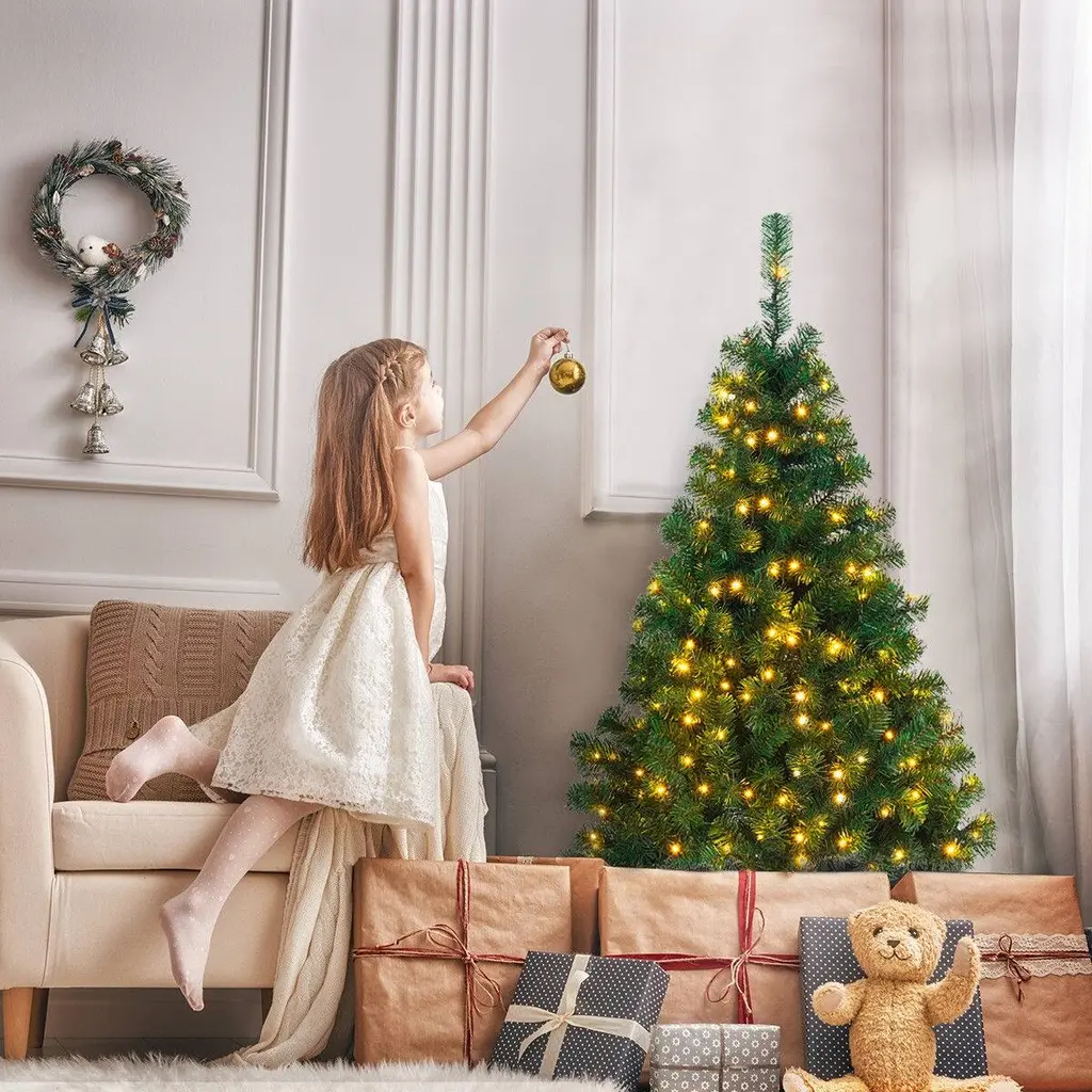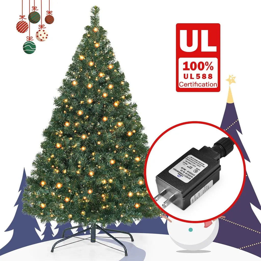 Bring a touch of holiday cheer to your home with our 4.5' Christmas Tree. Each tree comes with 398 branch tips and 200 led lights, which makes the tree looks real and thicker. The sturdy stand is included to support the tree in a upright position and can be used for a long time. The tree body comes with 2 pieces and is therefore really easy to put together. This tree is sure to let your Christmas full of merry and bright, do not hesitate to buy one!Full-bodied Tree With High- quality PVC material, Easy To Storage 398 tips are made from eco-friendly PVC material, real and safe Sturdy iron stand, support tree well Pre-lit 200 LED light provide a warm white lighting to your home Simply assemble required Perfect for indoor decoration at Christmas and can be used to decorate any room in a houseSet includes: 1 x Pre-lit Christmas tree 1 x Stand 1 x Transformer Color: Green Material: PVC + Iron Overall Dimensions: dia 2.6' x 4.5' H Voltage: Input: 120V, Output: 29V Power: 8.4W Transformer: UL Number of Tips:398 tips Number of light: 200 LED light Net Weight: about 7.5lbs