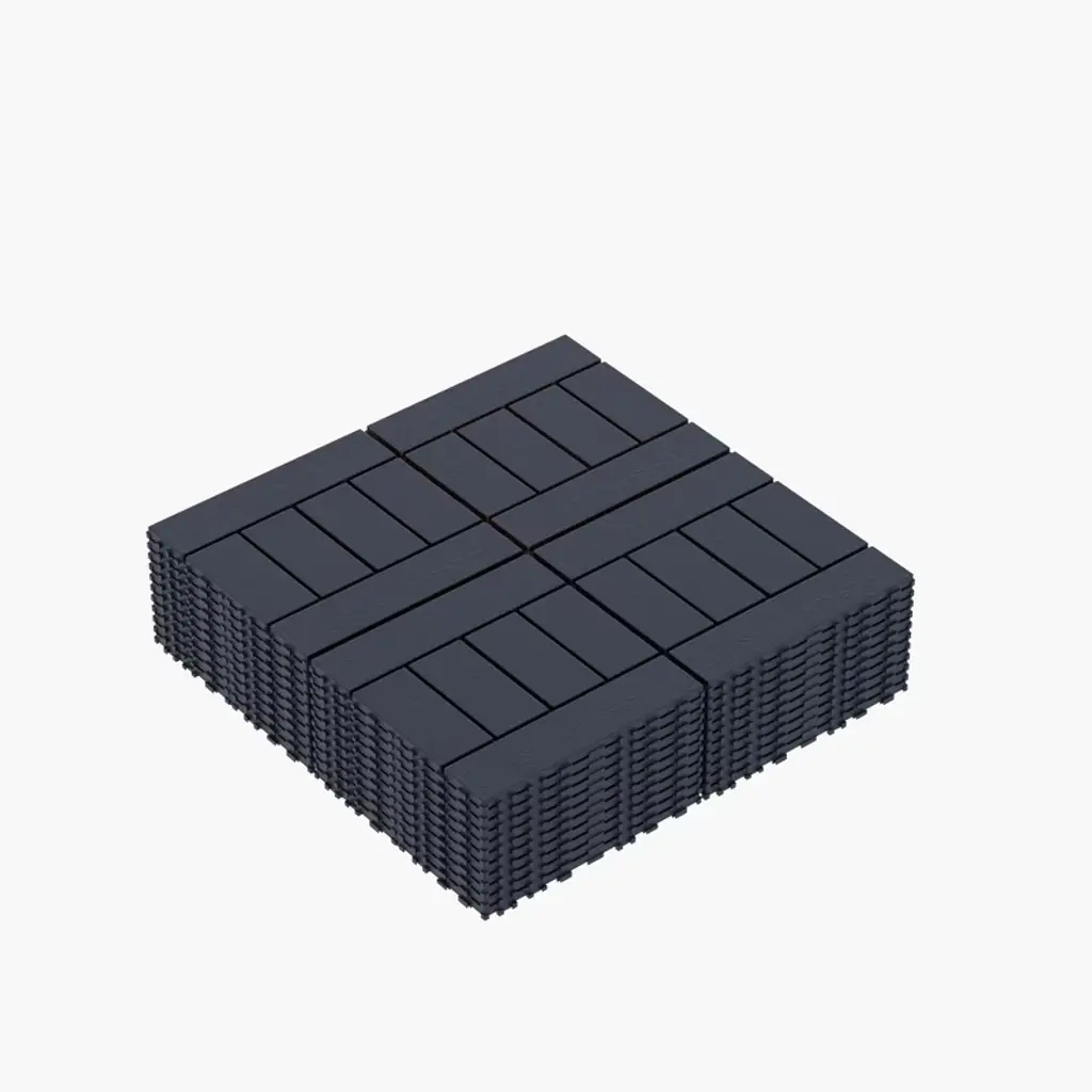 H Style 12" Patio Deck Tiles, Diy Interlocking, Easy & Quick Install. 44pcs Dark Gray For Porch, Poolside, Balcony, Backyard.