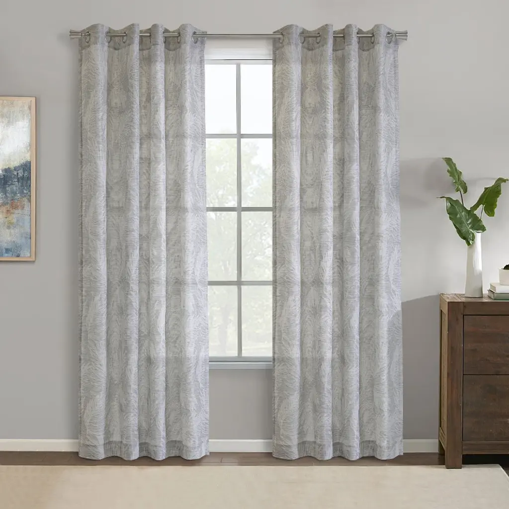 Habitat 100% Polyester Eleanor Light Filtering Jacquard Leaf Grommet Curtain Panel 52" X 108" Grey