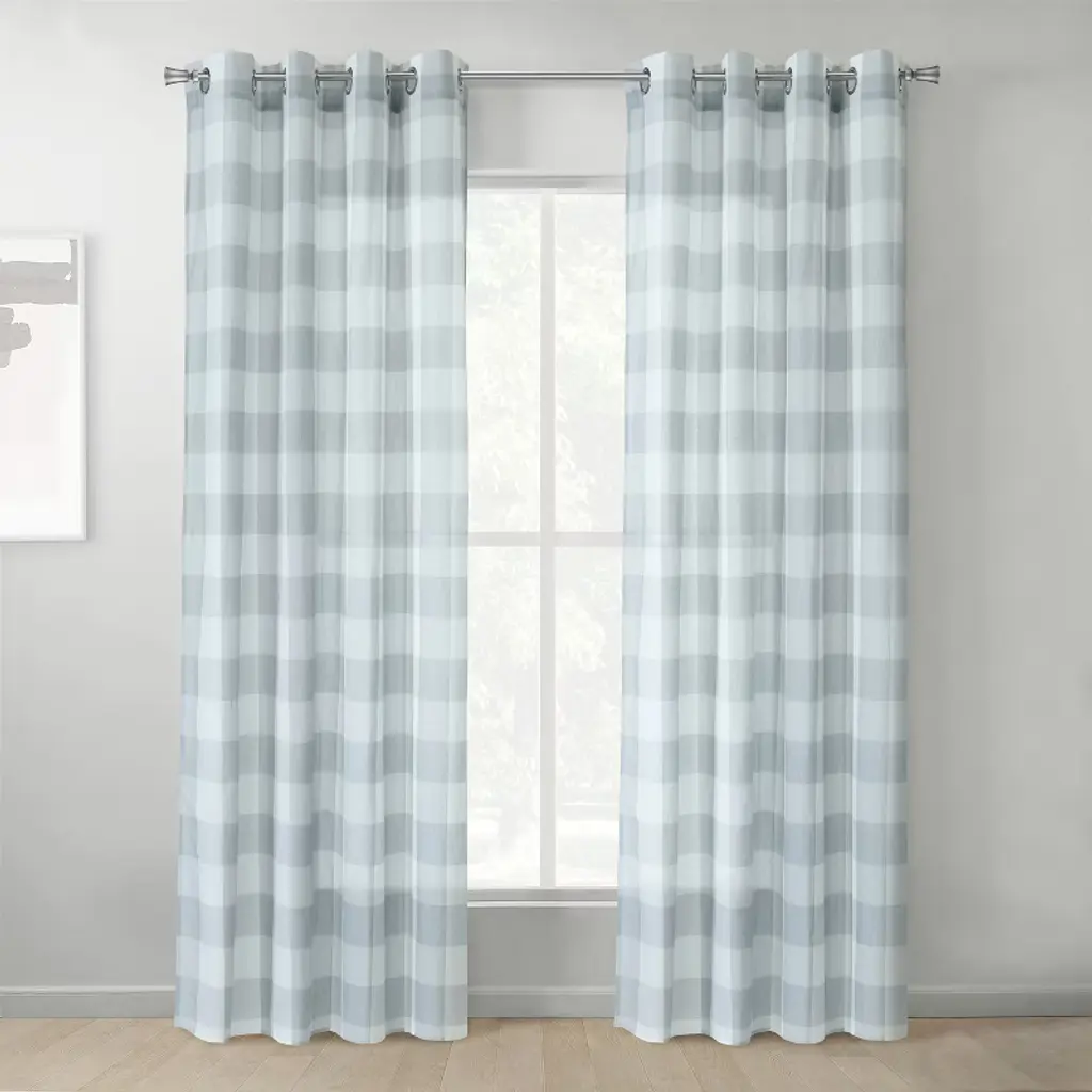 Habitat 100% Polyester Genesis Light Filtering Plaid Woven Grommet Curtain Panel 52" X 108" Grey