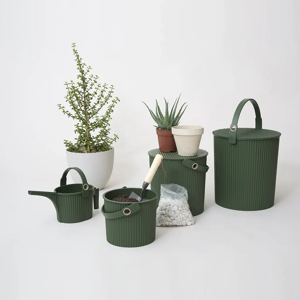 The Hachiman Bucket from Chilewich represents Japanese design excellence reimagined—a versatile, lidded vessel crafted with exceptional durability for multifaceted utility throughout the refined home and garden. This distinguished container transcends conventional limitations, functioning elegantly as a sophisticated stool, auxiliary table, discreet storage solution, elegant planter, or practical waste receptacle. Thoughtfully engineered with a purposeful handle aperture for effortless filling, its remarkable structural integrity supports an impressive 330 pounds while maintaining stackable efficiency. Highlights