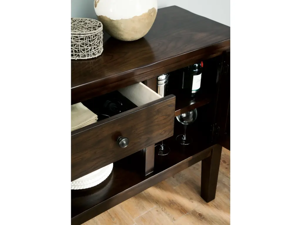 Take clean-lined, classic styling and touches of vintage inspiration. Top with a deep, complex finish for newfound sophistication. Now that's a look you can live with. Sporting a straightforward farmhouse profile, complete with shaker-style cabinet doors, the Haddigan server simply impresses. Details including rounded off corners add a gently worn, casual sense of charm.