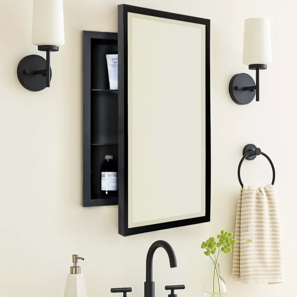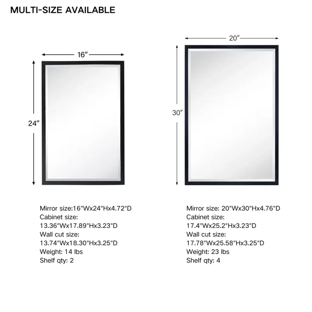 This medicine cabinet is metal framed with a matt finish, a great fit for a variety of bath decor. The mirror on the front door features a beveled look indicating an elegant and chic bathroom look.