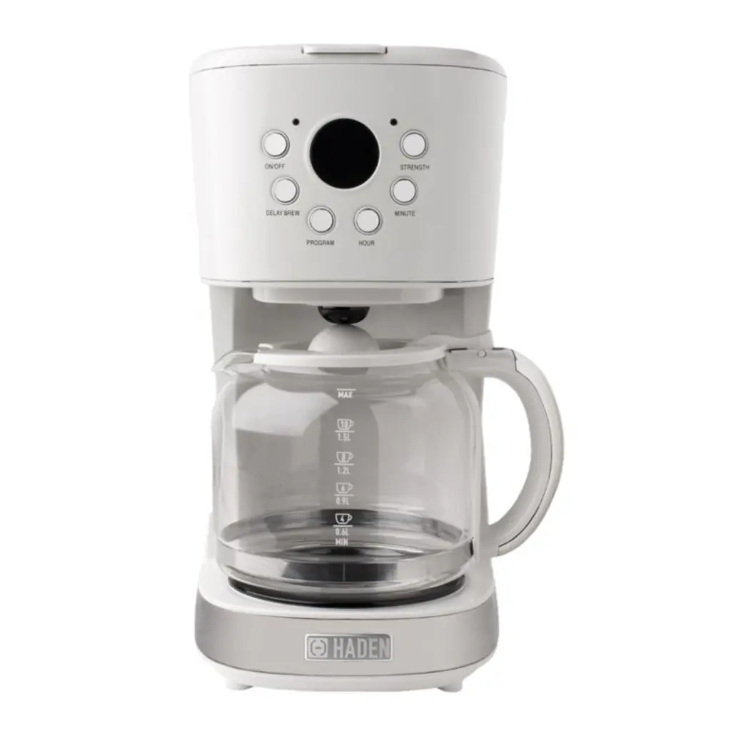 Inspired by traditional British homes, HADEN updates the coffee maker in ivory white. The coffee machine brews up to 12 cups, allows you to select your preferred brew strength and offers delay-brew, keep-warm, anti-drip and auto-off functions. Pair the off-white coffee maker with matching HADEN appliances for a coordinated kitchen.