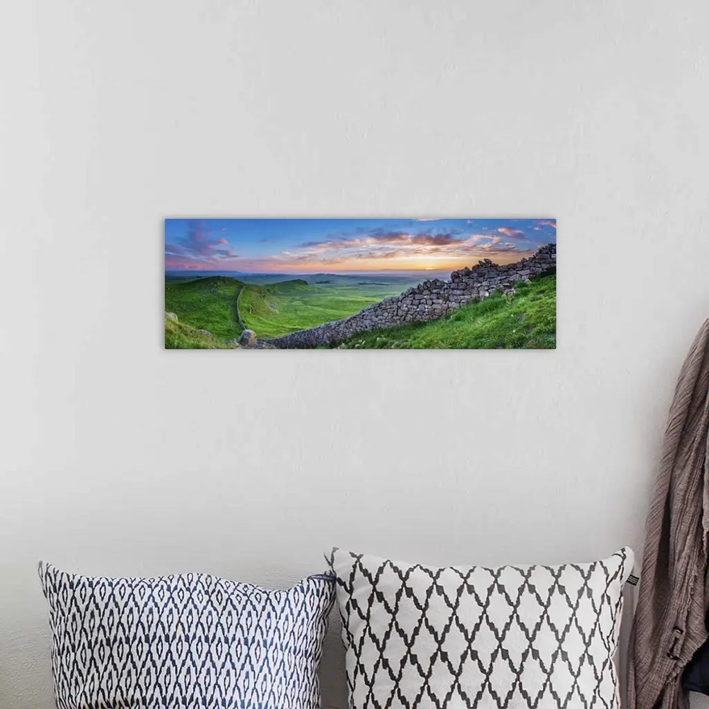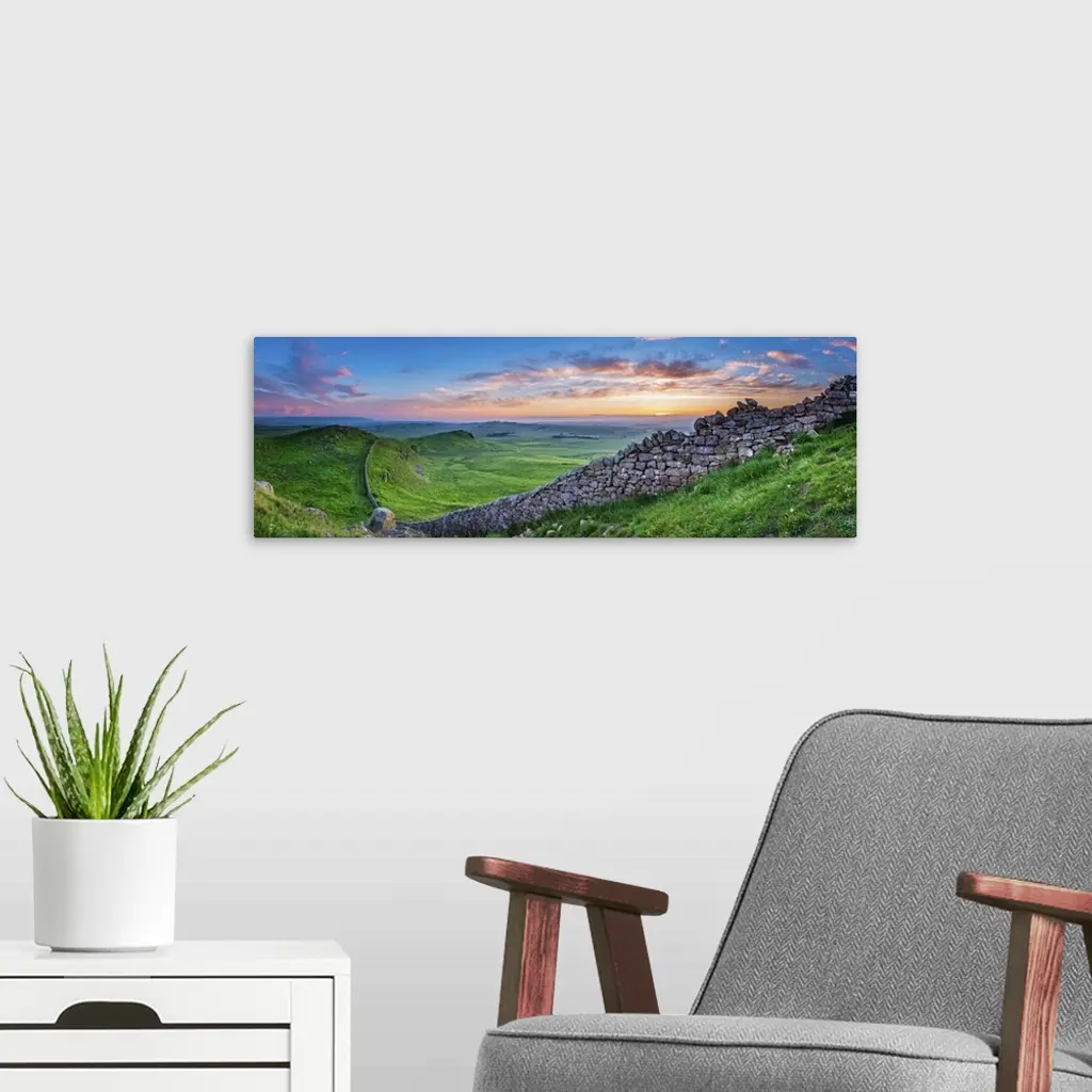 Hadrian's Wall Panorama At Sunset, Northumberland National Park