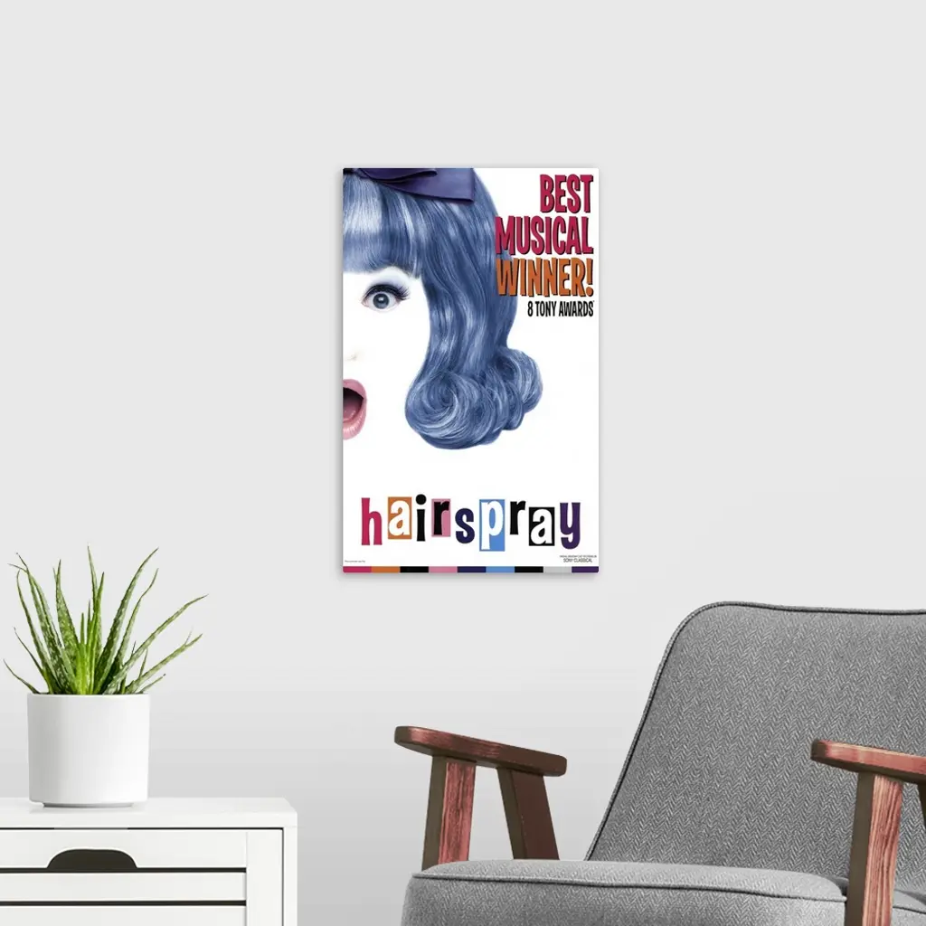 Poster for the Broadway rendition of Hairspray. It shows half the face and hair of one of the main characters.