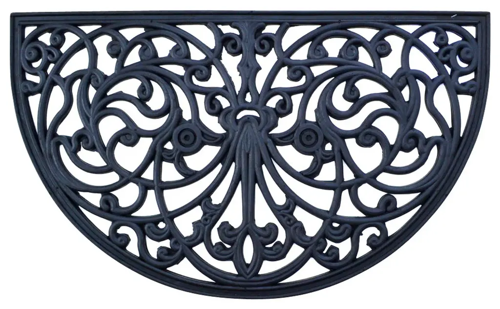 Wrought iron rubber mats mixes vulcanized natural rubber and recycled rubber to form an elegant mat that is resistant to dust, skidding, and is durable. These mats are optimal for areas exposed to moisture such as pool sides. These mats are about 1/2" thick.