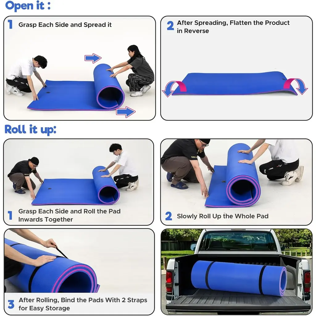 Hallolure 8 X 4 Ft Water Floating Mat Bouncy Tear-Resistant Xpe Foam For Outdoor Water Activities - Blue