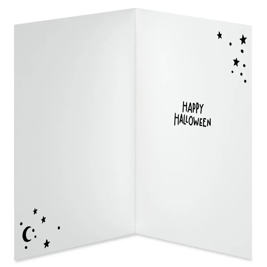 Spook your friends and family with this fun Halloween card featuring a whimsical skeleton and a mysterious crow perched on its shoulder, set against a starry night sky. The playful phrase, 'Time for a Skele-ton of Fun.' adds a lighthearted touch, while the inside message keeps it simple with 'Happy Halloween.' Crafted for everyone who loves a dash of spooky humor during the Halloween festivities. Envelope included. Make your Halloween greetings stand out with this eye-catching card. American Greetings offers exceptional greeting cards, gift wrap, and celebration products so you can connect in ways that fit your personality and authentic style.