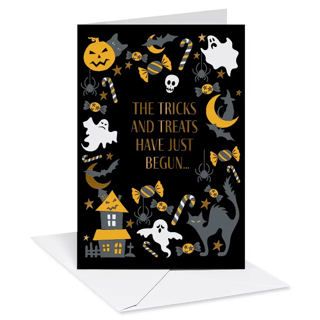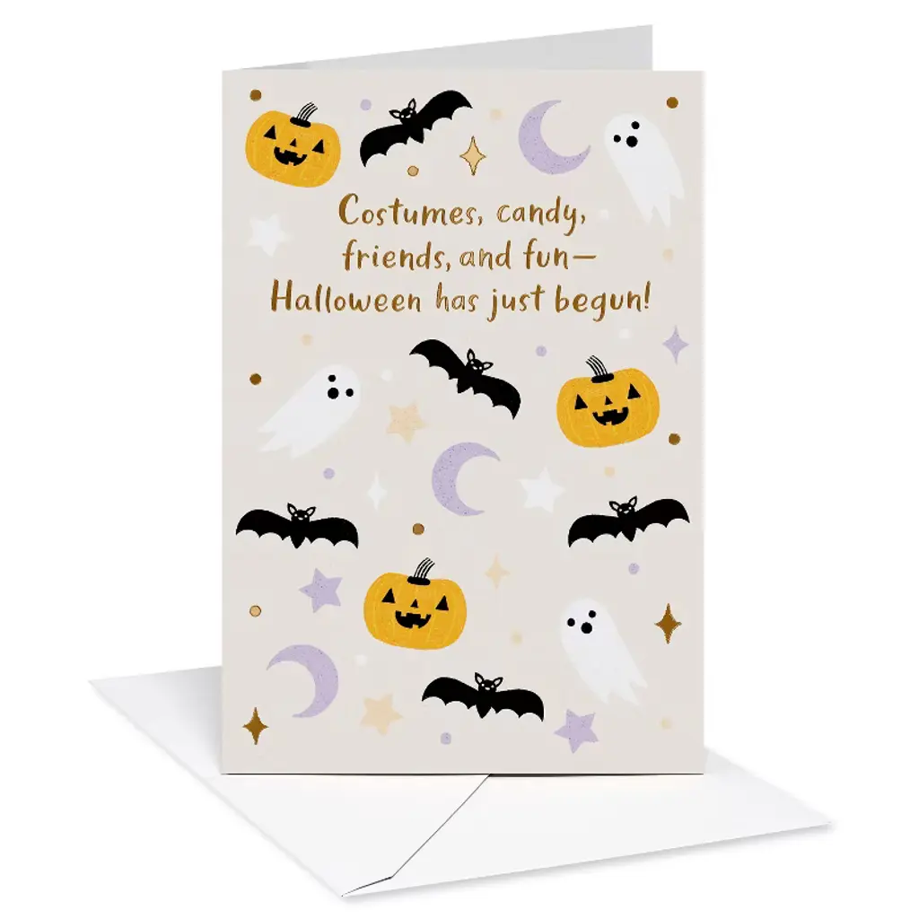 Set the perfect tone for a spooky yet fun Halloween celebration with our ‘Spooky Vibes Only’ greeting card. Featuring bold, contemporary lettering against a mystic starry night background, this Halloween card is perfect for sharing your festive spirit. Celebrate this hauntingly special occasion by sending a card that captures the mood with a chilling yet cheerful message inside. American Greetings offers exceptional greeting cards, gift wrap and celebration products so you can connect in ways that fit your personality and authentic style.