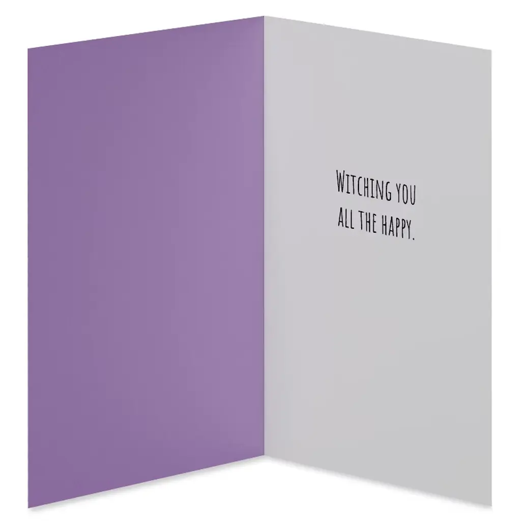 Cast a spell of happiness this Halloween with our Witch Hat Greeting Card. The front boasts a colorful witch hat under a crescent moon, making it perfect for setting a festive tone. Inside, the card wishes 'Witching you all the happy,' ideal for sharing spooky season joy with friends and family. It's a wonderful way to express your Halloween spirit with flair. American Greetings offers exceptional greeting cards, gift wrap, and celebration products so you can connect in ways that fit your personality and authentic style.