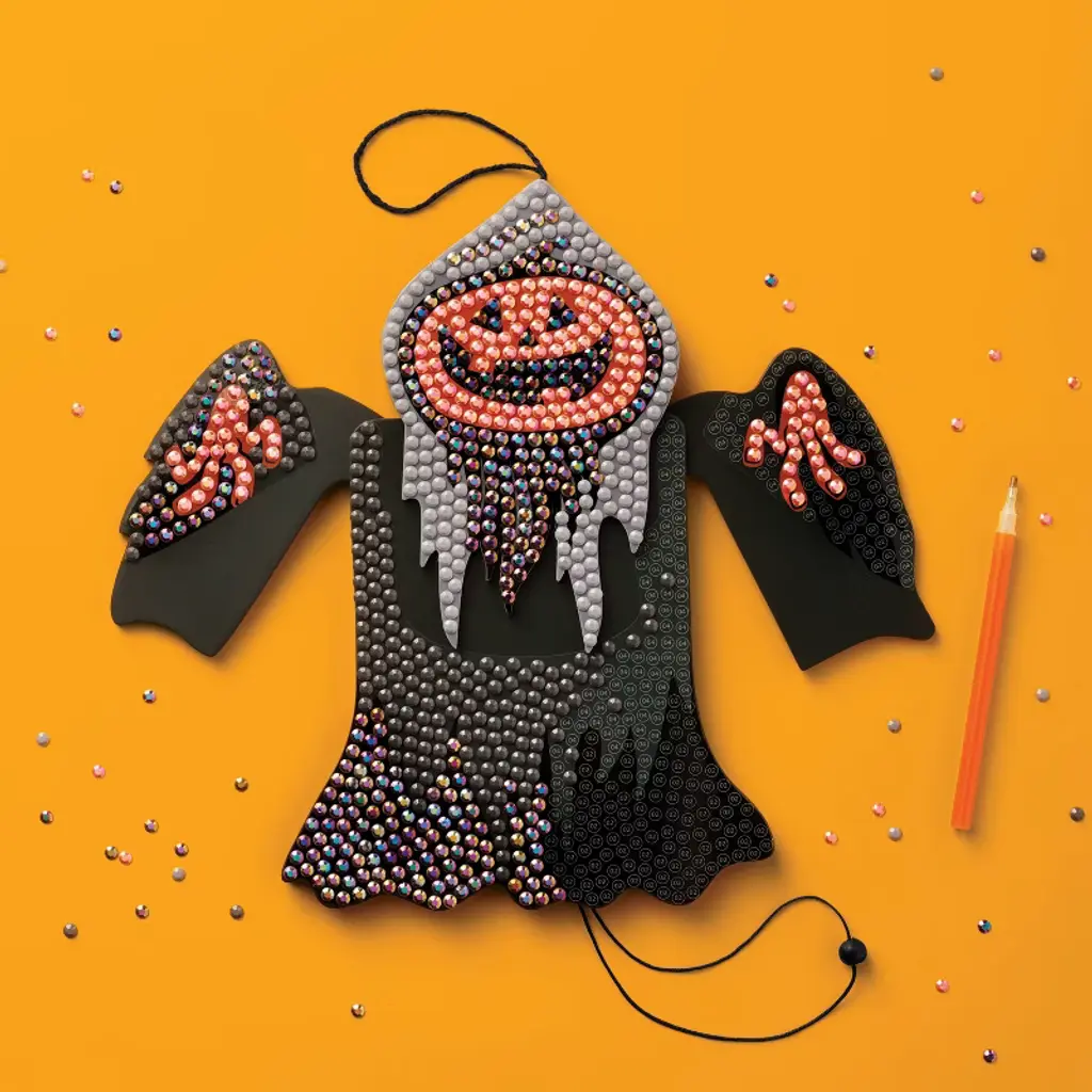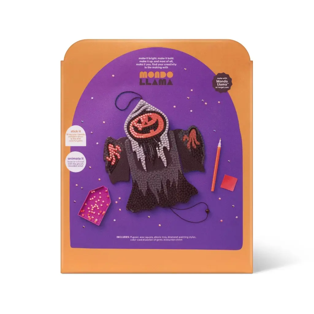 Enjoy a fun time with this Create-Your-Own Gem Art Ghoul Kit from Mondo Llama™. This kit includes a puppet in the shape of a jack-o'-lantern with movable arms. The kids can use the color-coded gems to decorate the puppet with the help of a stylus and follow the instructions on the sheet. Once completed, they can use it as a prop to play with friends or as decor for a creepy display. Mondo Llama™: Find your creativity in the making.