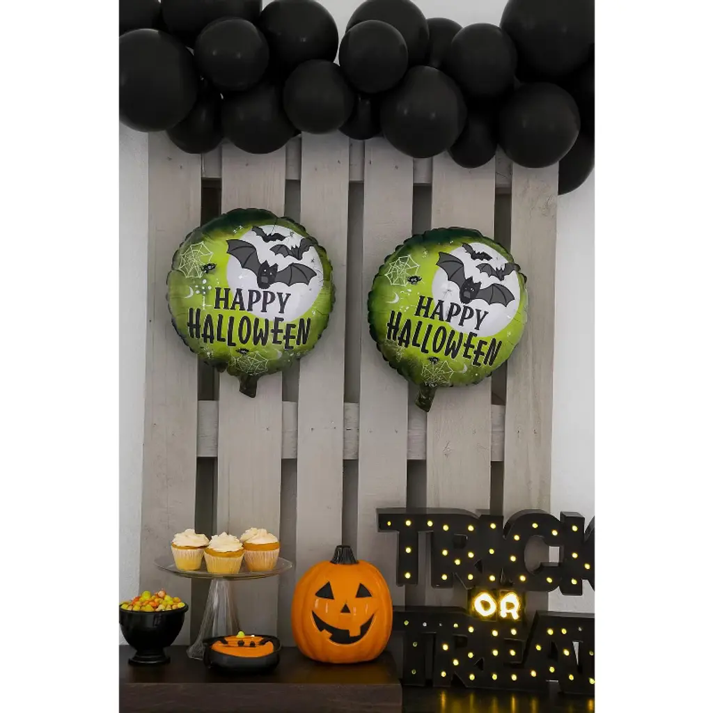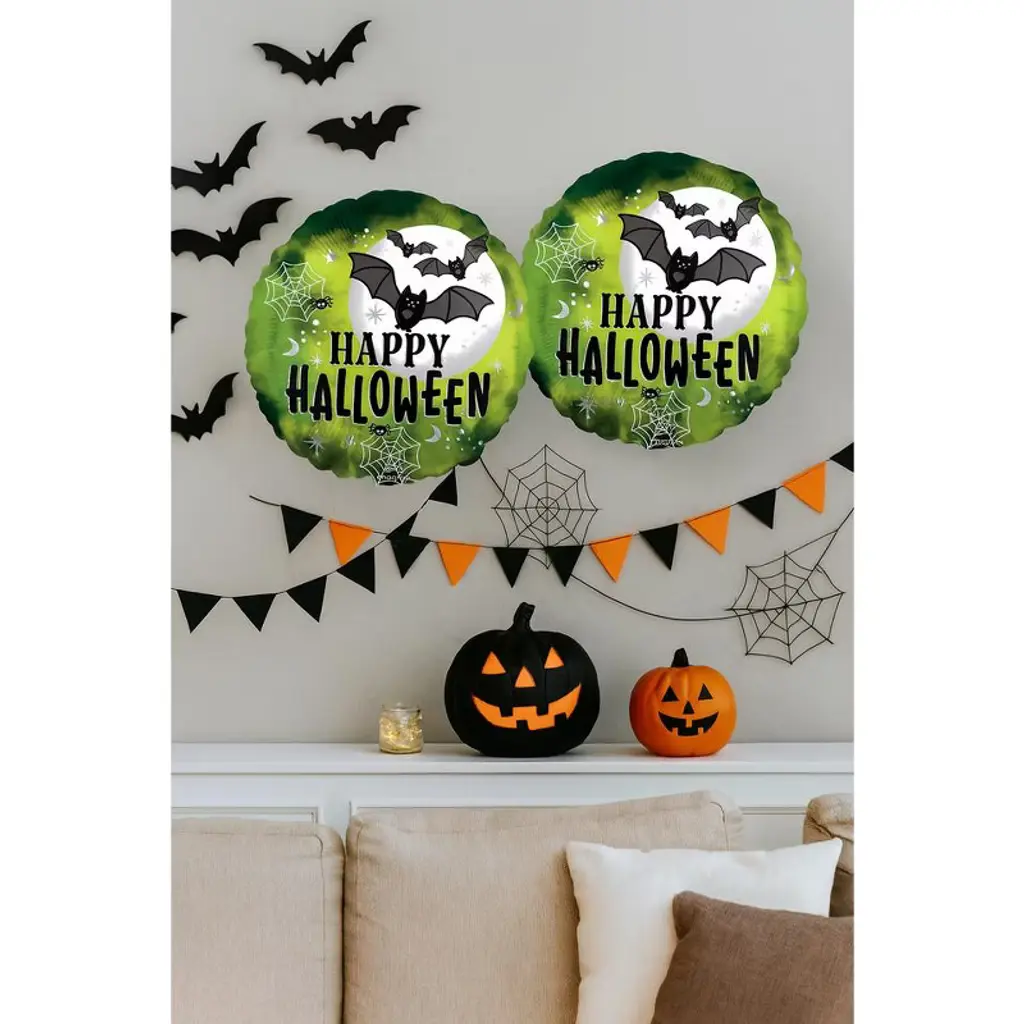 Bring a spooky yet festive touch to your Halloween celebration with our Halloween Glow Batty Balloon 2 Pack! Each balloon features a chilling scene of bats flying across a glowing moon, set against eerie shades of green and black that create the perfect haunted atmosphere. Made with durable standard foil, these balloons are designed to stay inflated longer, making them a reliable decoration for parties, haunted houses, or trick-or-treat events. Easy to inflate and versatile to display, this bat and moon design adds just the right amount of mystery and fun to your seasonal décor.