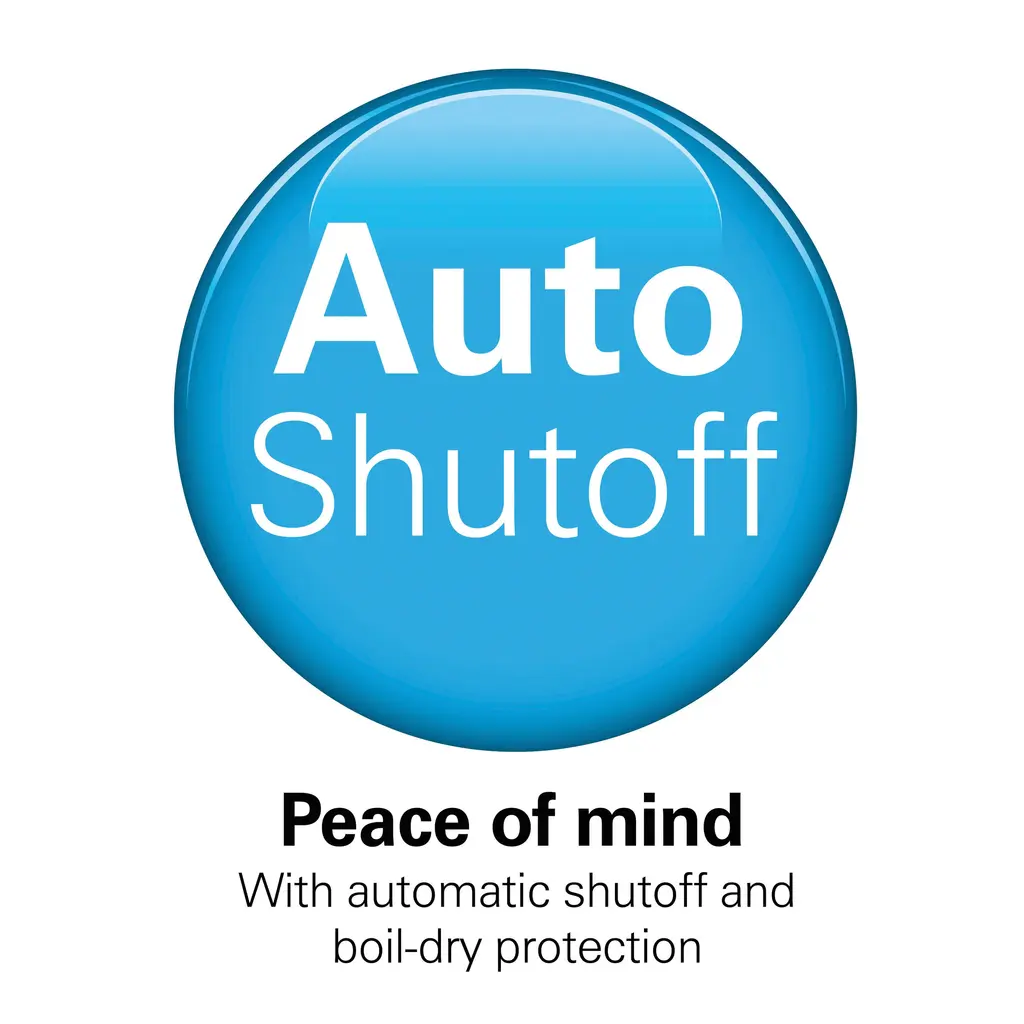Illuminate your kitchen and brighten every morning with the Hamilton Beach 1.7 L Stainless Steel Electric Kettle with LED Light Ring. Its stylish and functional LED light ring illuminates when water is heating up and the kettle is on. Since the LED light ring encircles the entire kettle, it's clearly visible from every angle. To provide years of long-lasting performance, the kettle's interior is made of durable, BPA-free, food-grade stainless steel. For peace of mind, this attractive 1.7 liter kettle comes equipped with automatic shutoff and boil-dry protection. You can boil water quickly every time since it has 20% faster boiling than a microwave.The easy-to-view water window lets you effortlessly monitor the kettle's water level, and convenient cord-free serving makes it easy to pour beverages at the table. Includes a removable mesh filter that helps prevent mineral scale from getting in your cup.