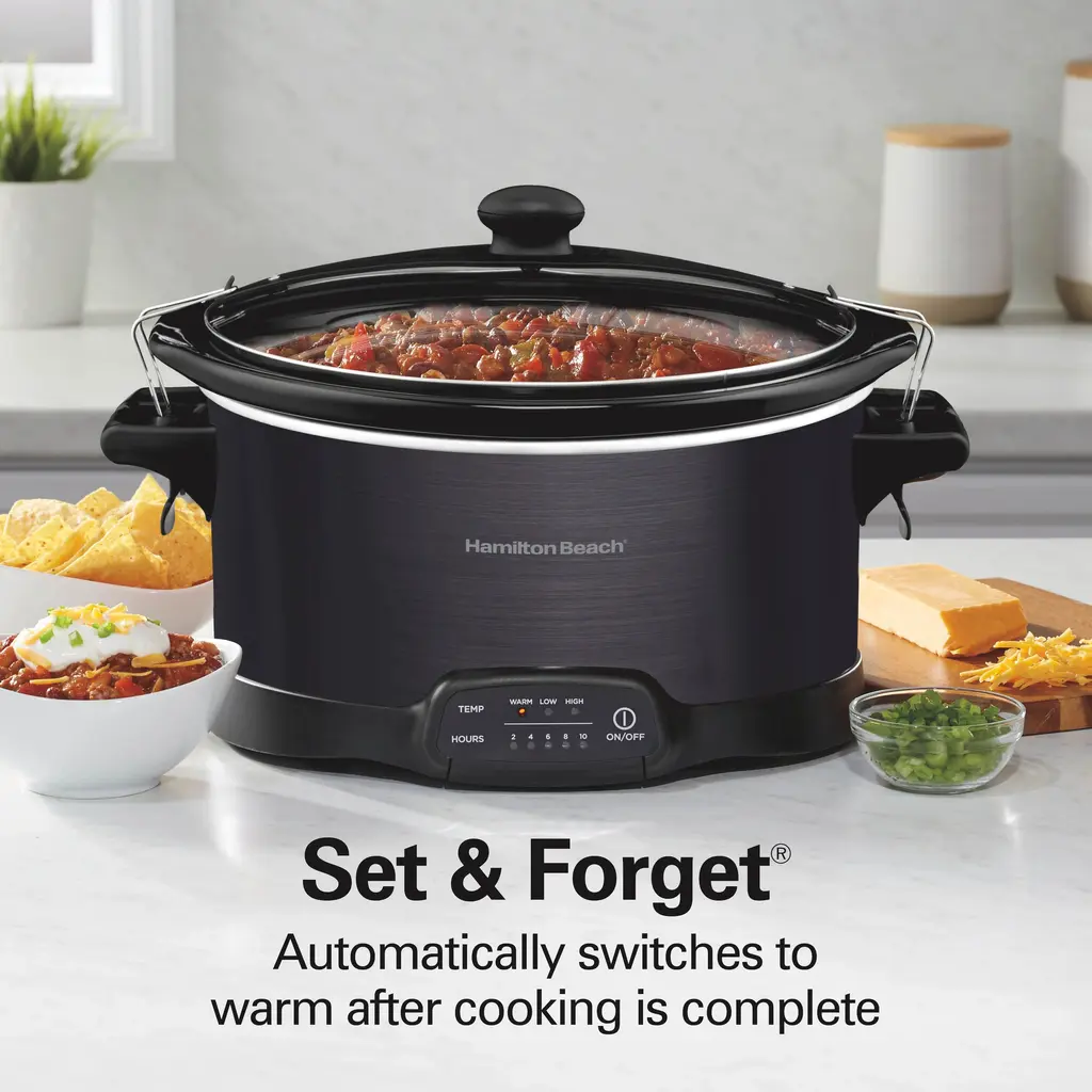 Hamilton Beach 7 Quart Programmable Stay Or Go Slow Cooker With Dipper - Black
