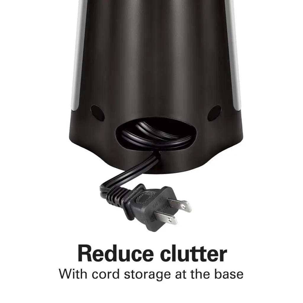 The Hamilton Beach® Stainless Steel Extra-Tall Can Opener is easy to clean, with a washable cutting lever that easily detaches to rinse clean under the faucet. The can opener is packed with convenient features that make your life easier. It includes a built-in knife sharpener, located in the back of the can opener, to help keep your kitchen knives their sharpest without the need for a separate sharpening tool. With its extra-tall design, this can opener easily opens a wide range of different-sized cans from small to large, including taller cans. The cord neatly pushes into a built-in storage area at the base of the can opener to reduce countertop and cabinet clutter. This electric can opener also has a convenient auto shutoff feature to free your hands for other kitchen tasks. Convenient features like these are why consumers love our can openers. We are the best-selling can opener brand in America.*