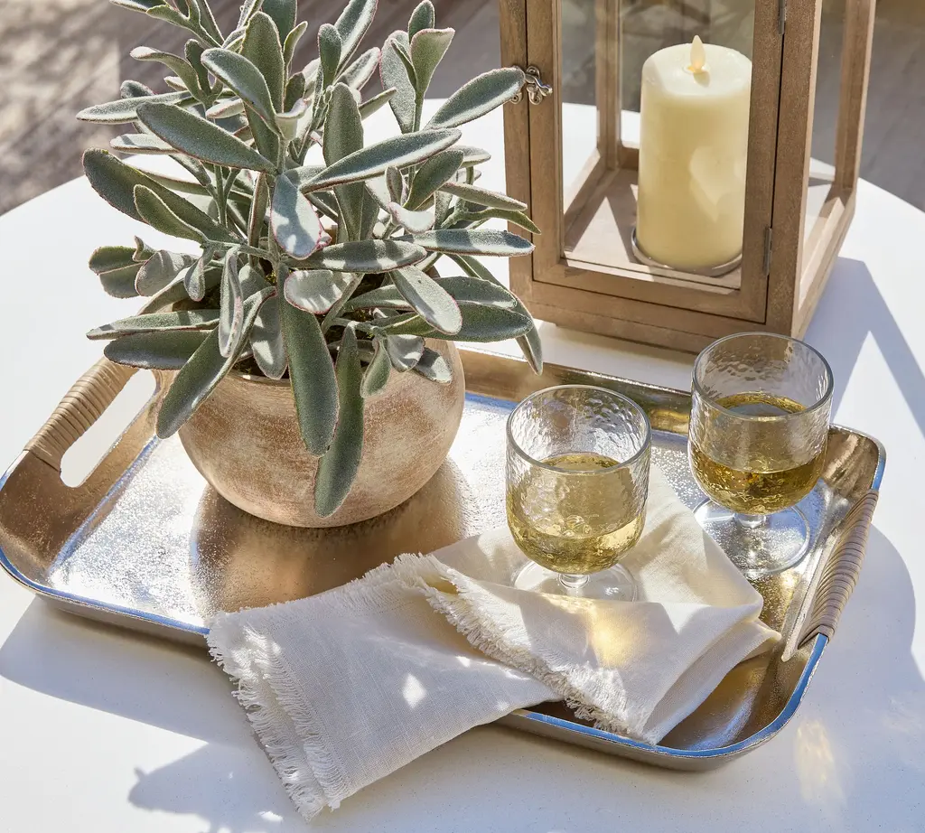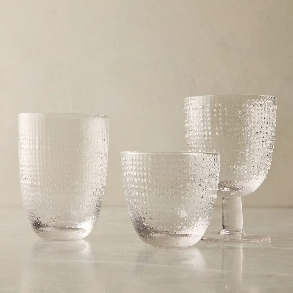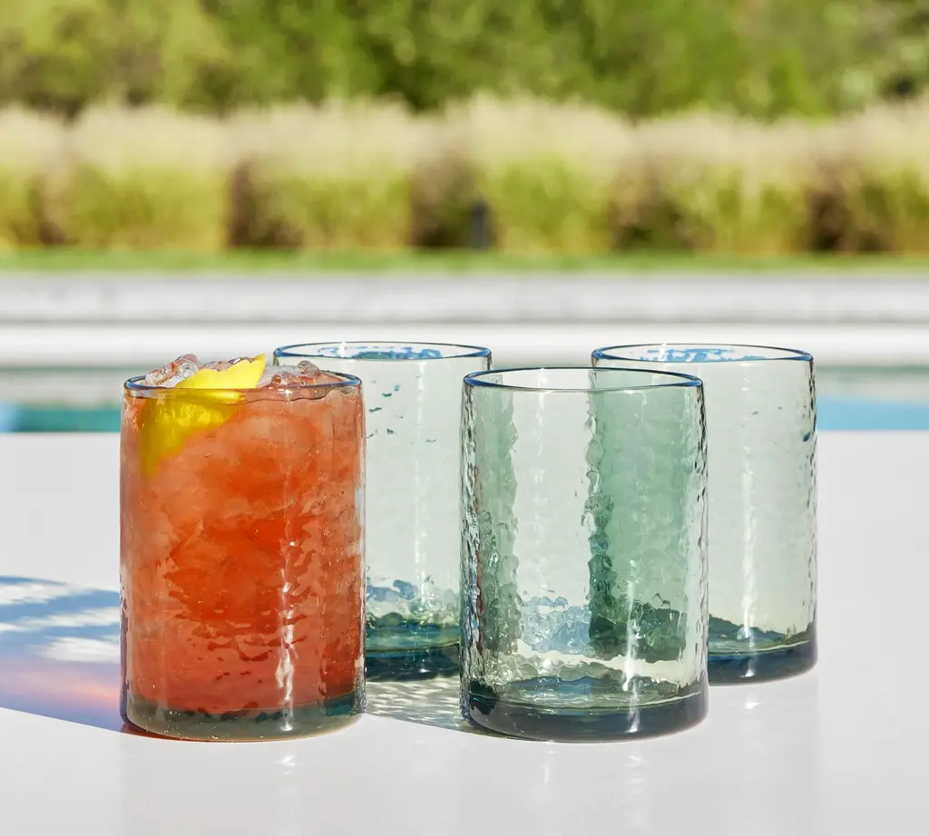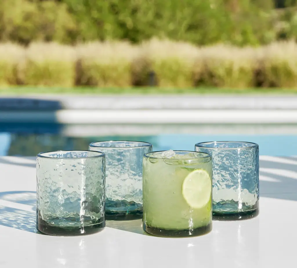 Warbled detailing and organic lines on our outdoor glasses are borrowed from our best-selling Hammered Glassware Collection, making them party-proof so you can enjoy your drinks by the pool or on a patio.