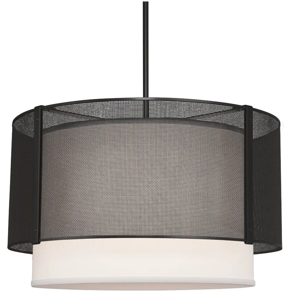 Uptown Mesh Drum with Linen Shade-30-Burnished Bronze-Linen Shade-Threaded Rod Suspension-E26