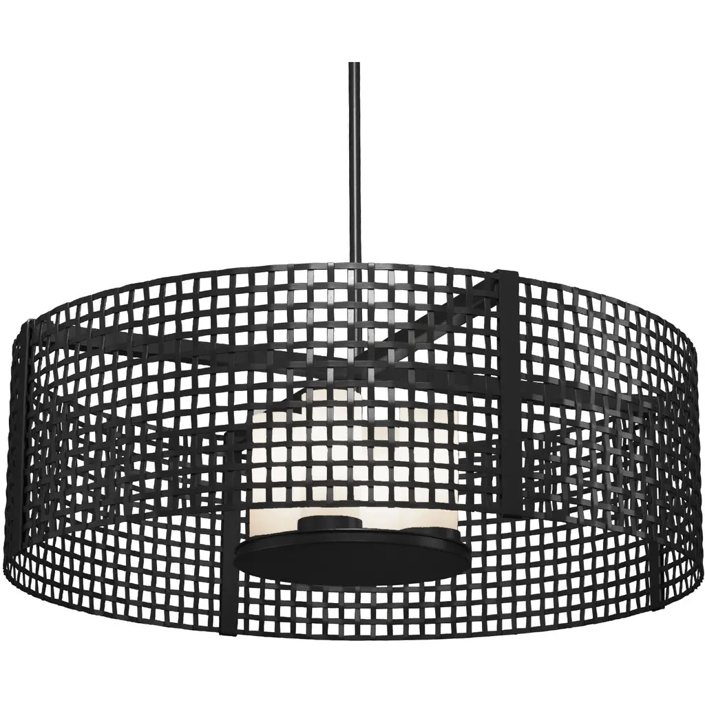 Tweed Drum with Linen Shade-36-Novel Brass-Linen Shade-Threaded Rod Suspension-E26