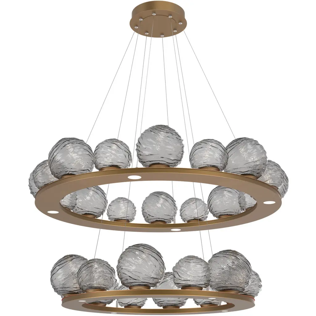 Gaia Two-Tier Platform Ring-Graphite-Smoke Blown Glass-Stainless Cable-LED 3000K