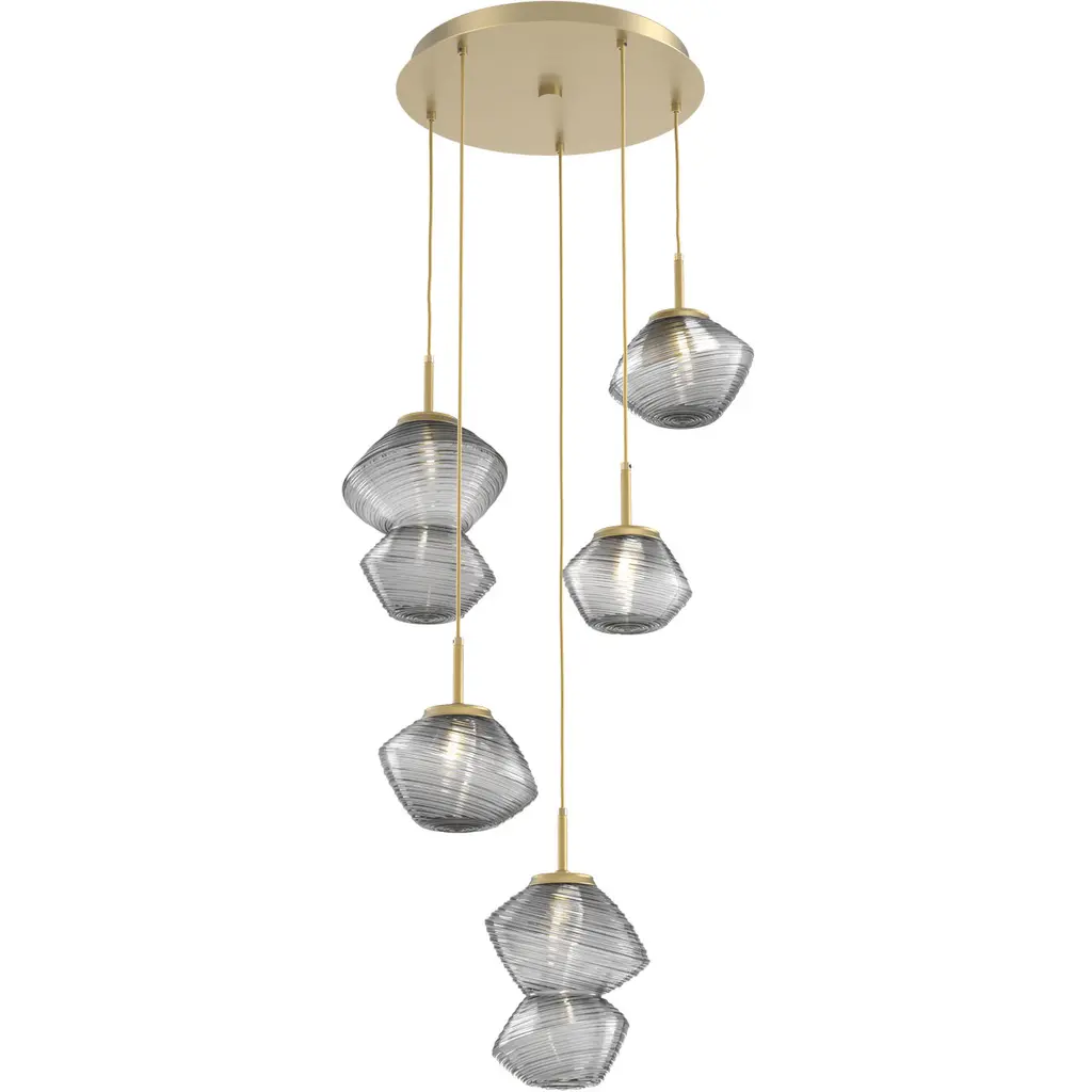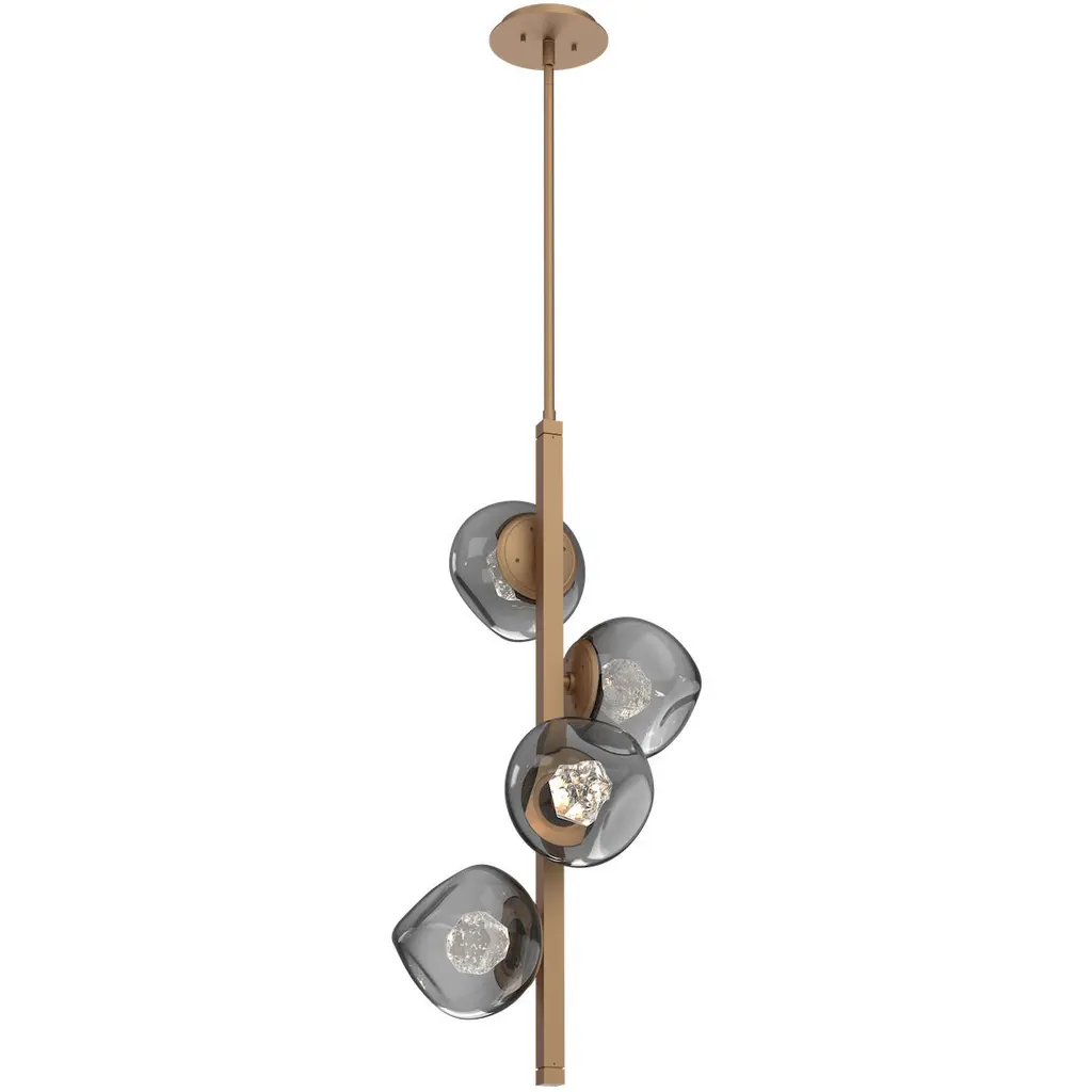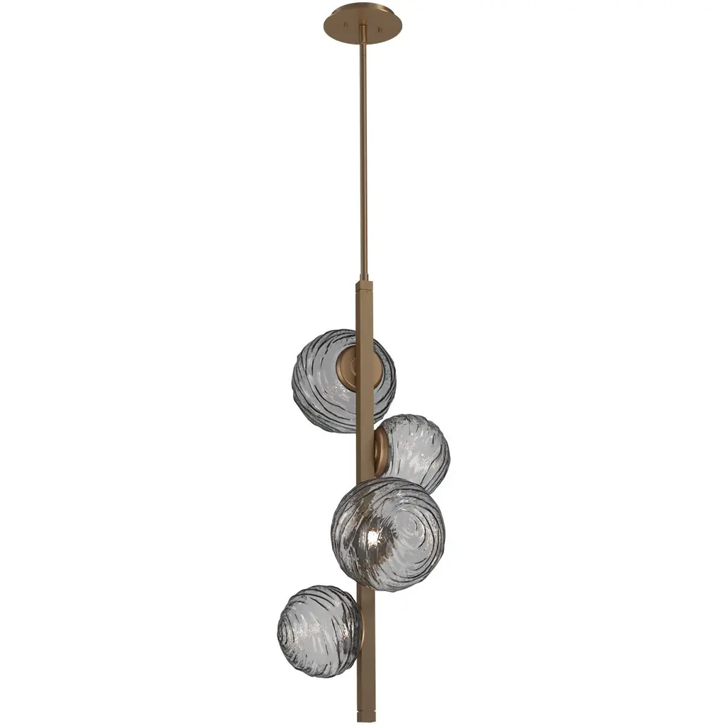 Gaia 4pc Twisted Vine-Gilded Brass-Smoke Blown Glass-Threaded Rod Suspension-LED 2700K