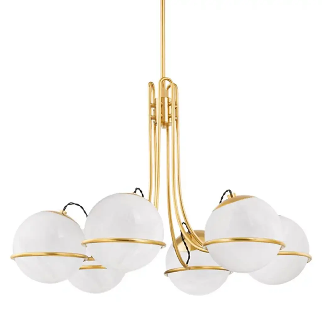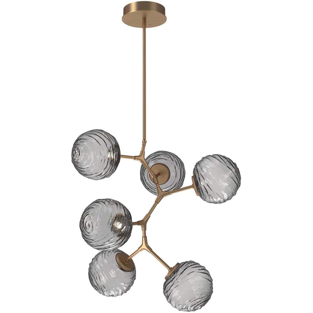 Gaia 6pc Modern Vine-Gilded Brass-Smoke Blown Glass-Threaded Rod Suspension-LED 2700K