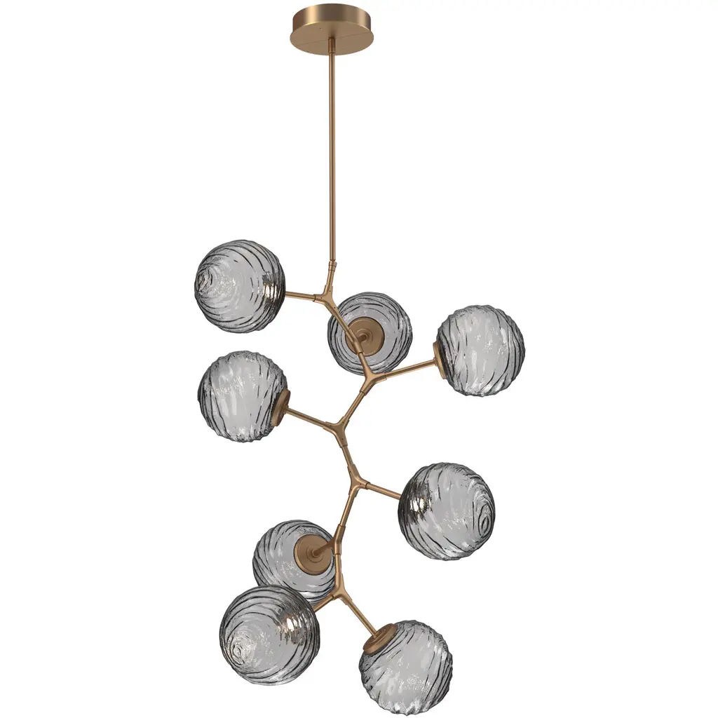 Gaia 8pc Modern Vine-Burnished Bronze-Smoke Blown Glass-Threaded Rod Suspension-LED 2700K