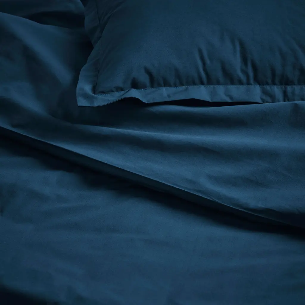 HAMPFLOCKEL Duvet cover and pillowcase(s) - dark blue King. Made of 100% cotton - a natural and durable material that becomes softer with every wash. The tight percale weave makes the fabric very durable and resistant to pilling. It has a matte surface and is wonderfully crisp and cool to sleep in.