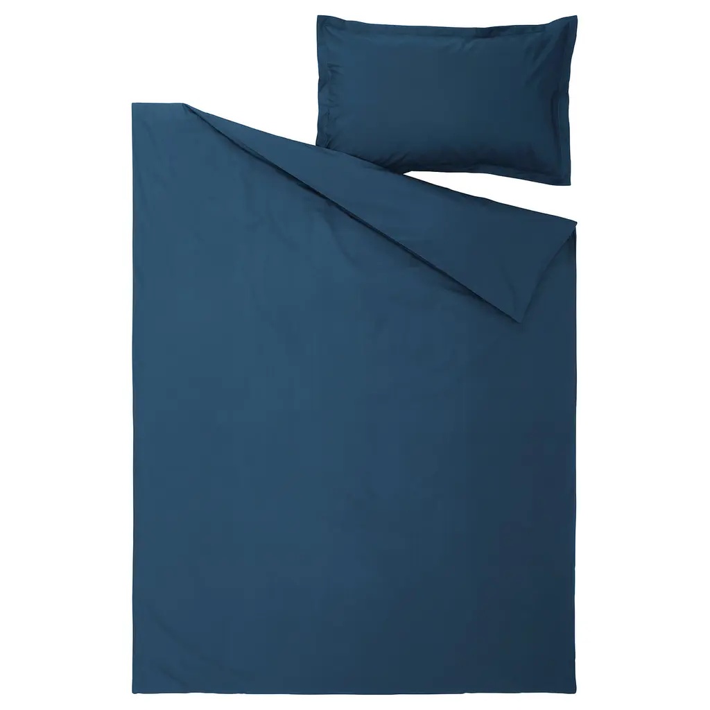 HAMPFLOCKEL Duvet cover and pillowcase(s) - dark blue Twin. Made of 100% cotton - a natural and durable material that becomes softer with every wash. The tight percale weave makes the fabric very durable and resistant to pilling. It has a matte surface and is wonderfully crisp and cool to sleep in.