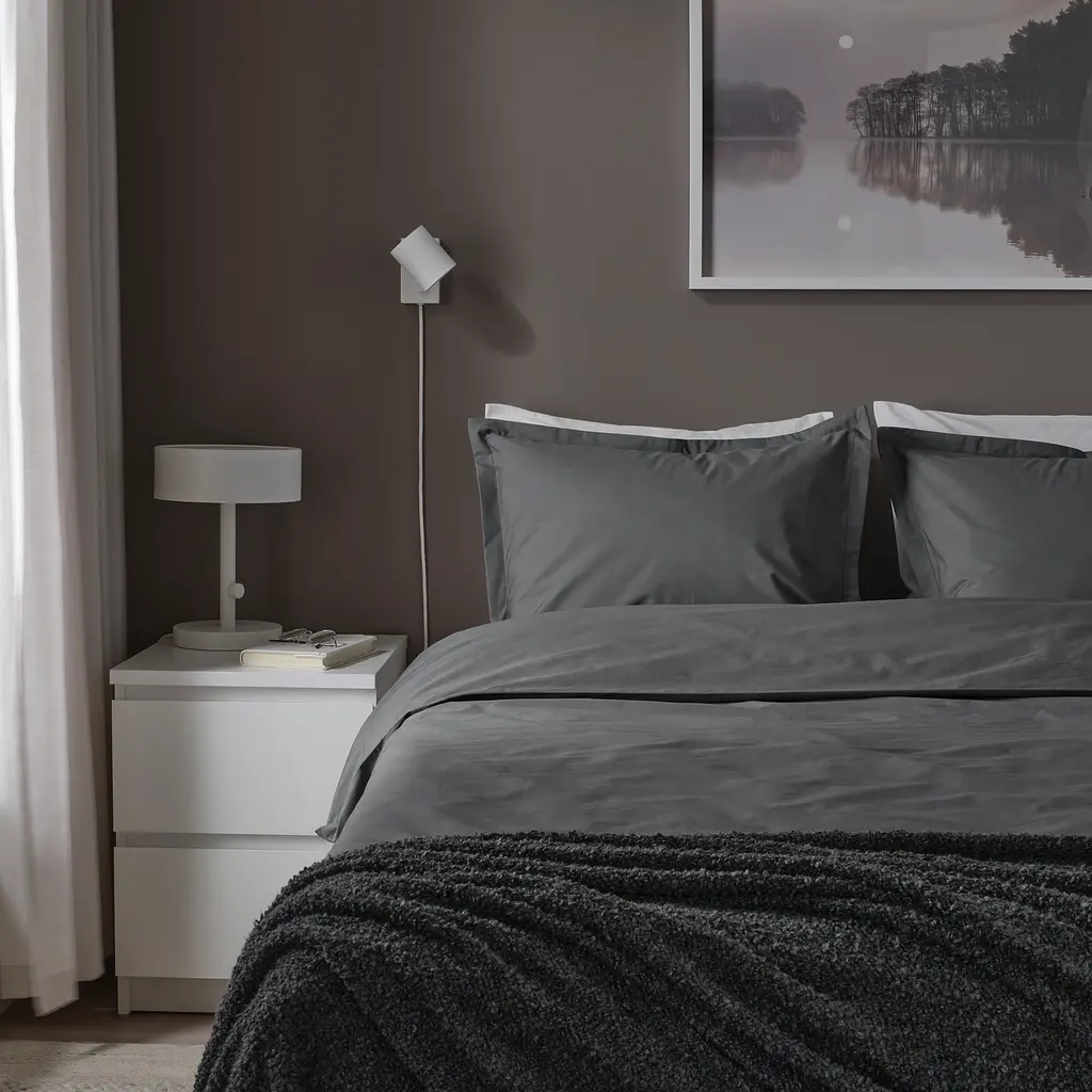 HAMPFLOCKEL Duvet cover and pillowcase(s) - dark gray Twin. Made of 100% cotton - a natural and durable material that becomes softer with every wash. The tight percale weave makes the fabric very durable and resistant to pilling. It has a matte surface and is wonderfully crisp and cool to sleep in.