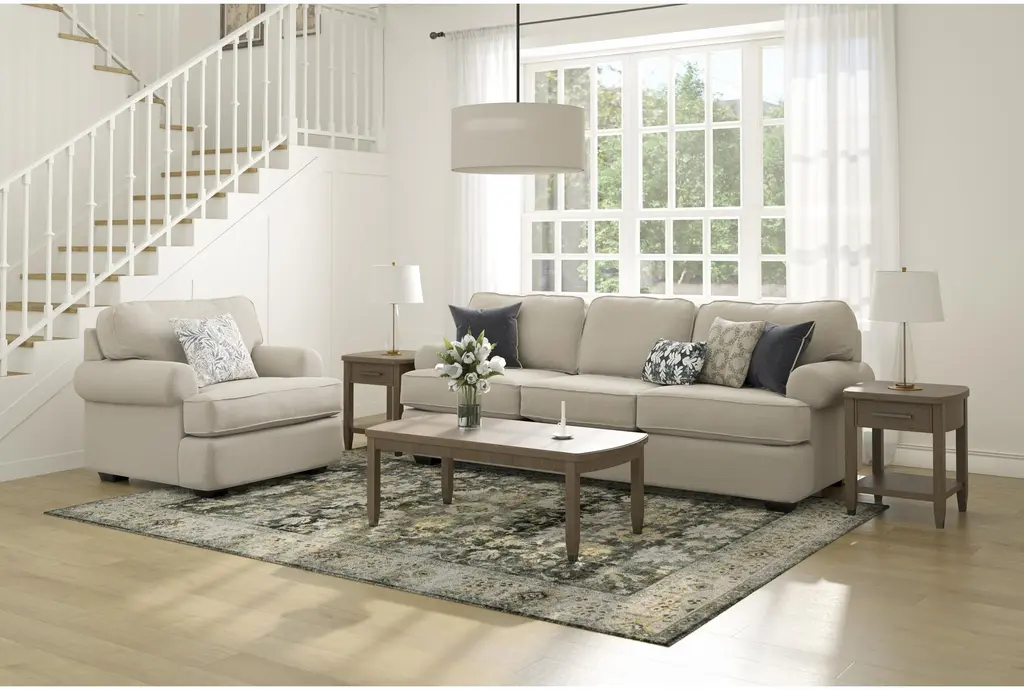 Introducing the Hampstead II Linen Beige 2 Piece Sofa & Chair Set, a perfect addition to your casual living room. This set includes a comfortable sofa and matching chair, both upholstered in a soft linen fabric. The neutral beige color complements any decor, making it a versatile choice for your home.