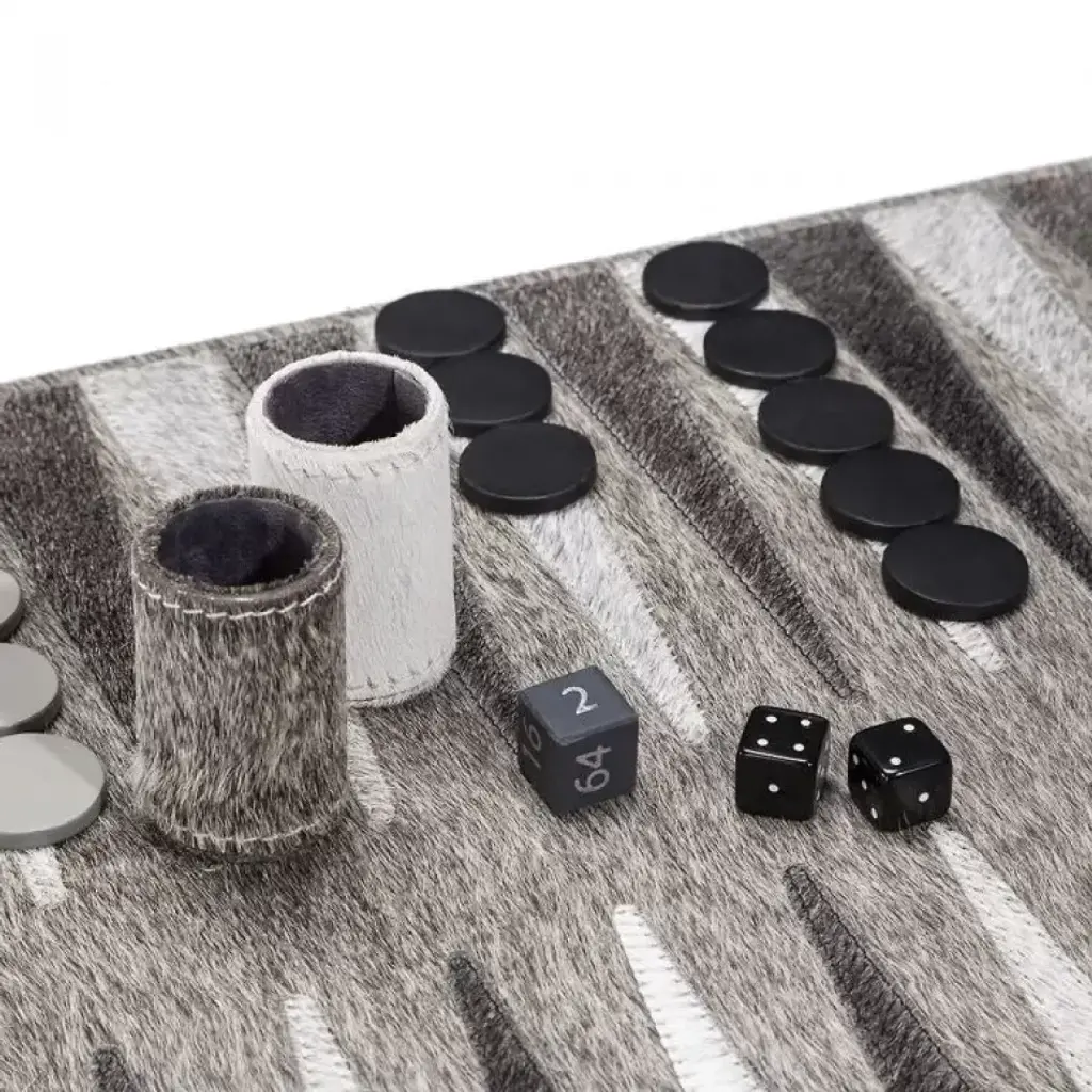A stylish take on a classic game, the Hampton Backgammon Set is fashioned in shades of natural grey hide with leather pieces.