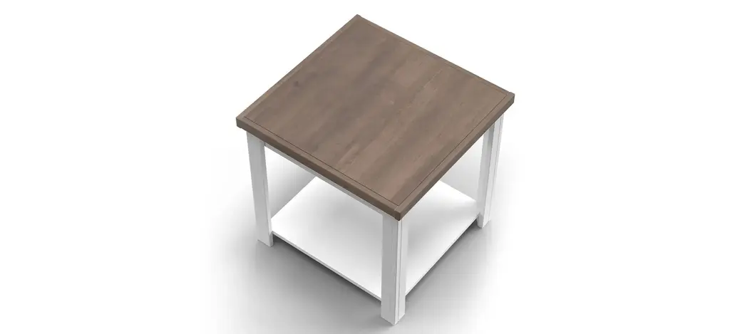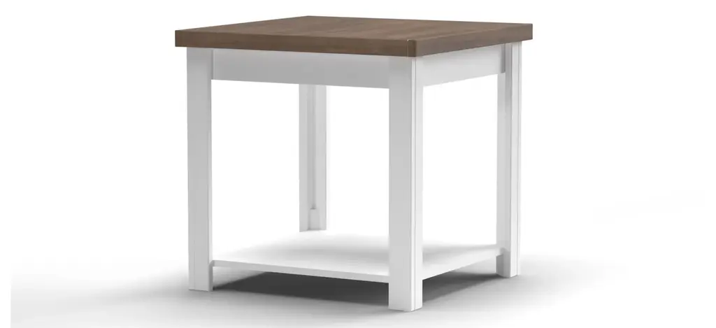 The Hampton end table offers the easy going styling of cottage blended with country to create this unique looking two toned piece. The combination of the bright Jasmine White exterior and Barnwood top makes Hampton a stylish addtion to any room in your house.