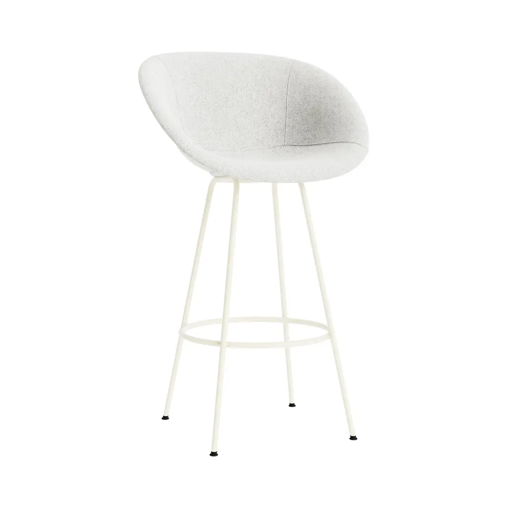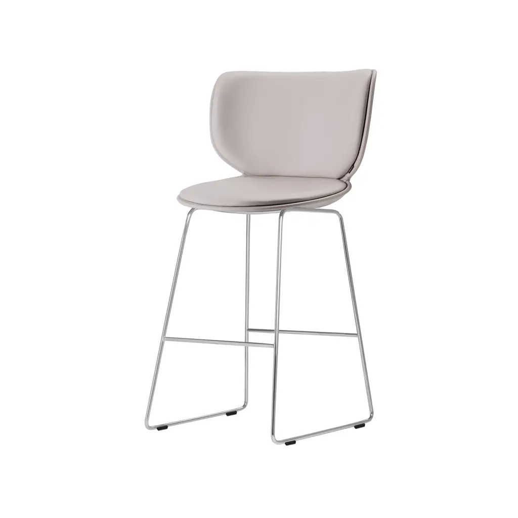 The Hana Bar and Counter Stool bring a sculptural presence to elevated seating areas. Its distinctive petal-shaped backrest and flowing lines, inspired by a blooming flower, provide visual interest and ergonomic comfort. The sturdy metal base is available in black or chrome finishes, while the upholstered seat can be customized with a variety of fabric options to suit different spaces. The stool is well-suited for both residential and commercial use.