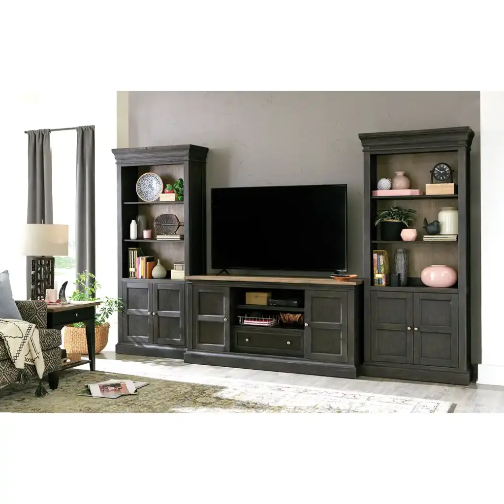 The Hancock Entertainment Console combines rustic character with functional design, crafted from cathedral grain white oak in a casual two-tone finish. Its hand-antiqued application enhances the relaxed, vintage-inspired aesthetic, making it a stylish focal point for any living space. A spacious shelf and drawer provide convenient storage, while two doors conceal additional compartments for keeping media essentials organized. Thoughtfully designed for both beauty and practicality, this console seamlessly blends charm and versatility.