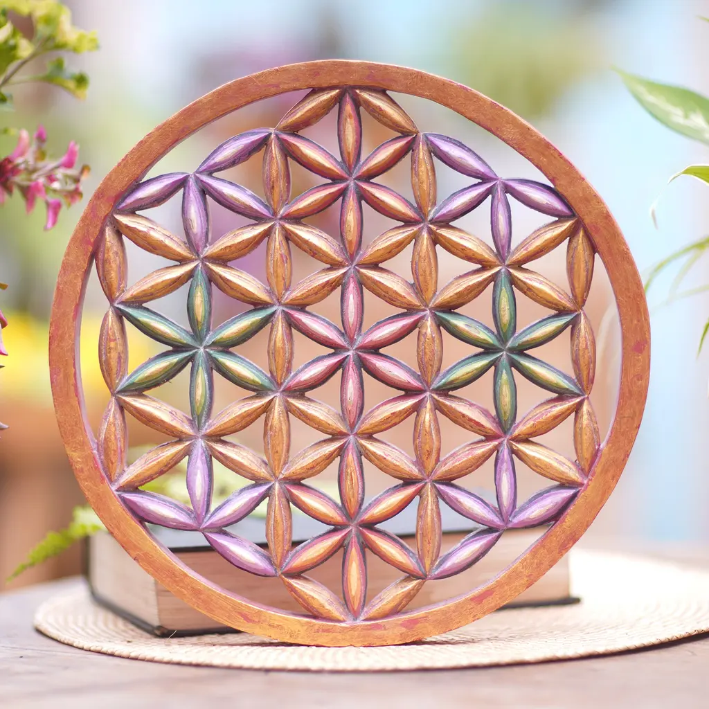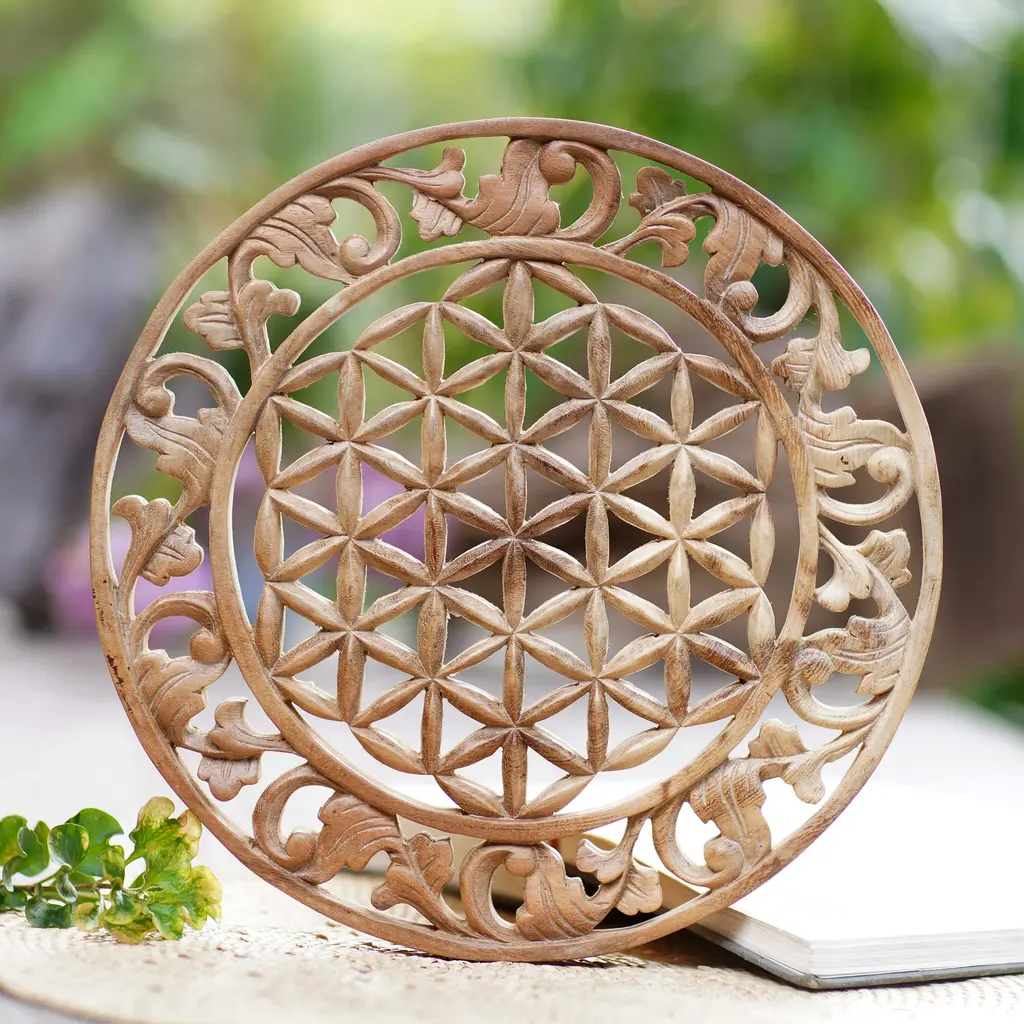 Inspired by scenes found in his native Bali, Wayan Nuliati designs this wall panel with floral and rice paddy motifs. The beautiful panel is hand-carved from suar wood.