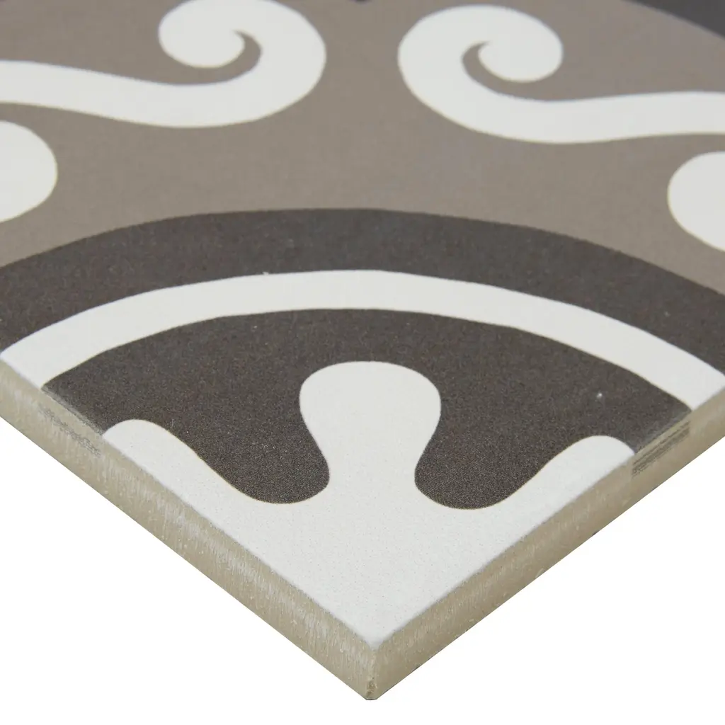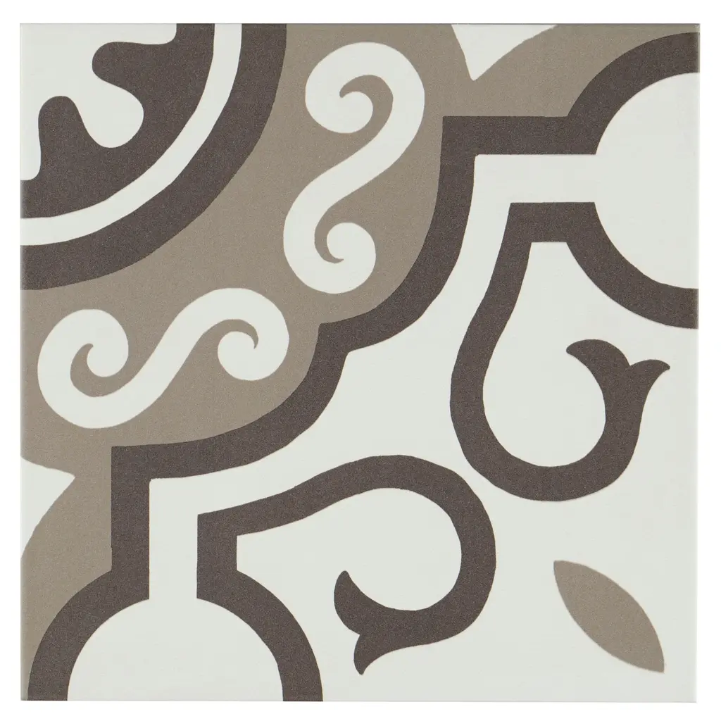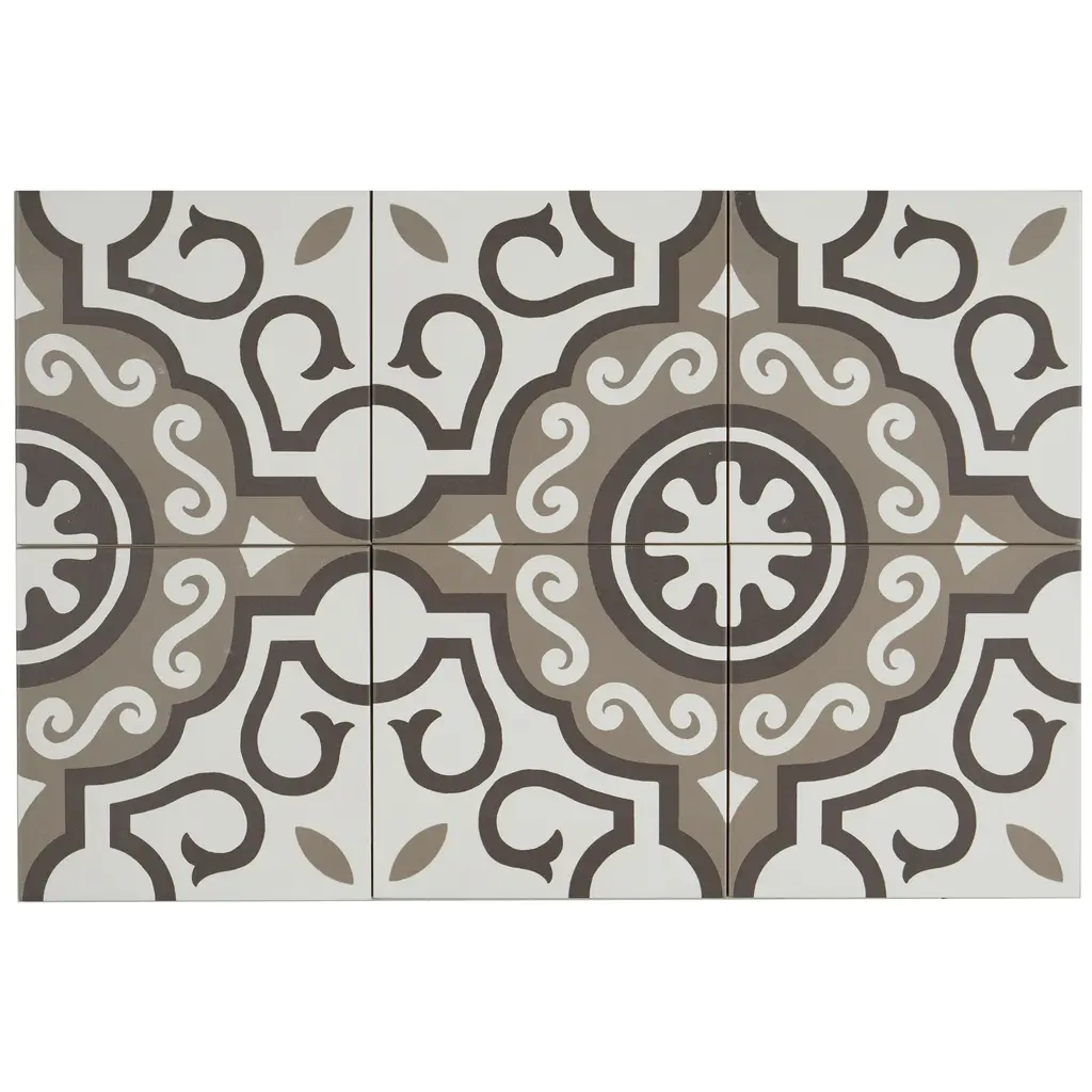 Add character to your walls or floors with these handmade porcelain decorative tiles, inspired by the timeless look of cement tiles. The unique pattern of white and brown adds texture and visual interest to any space. With 24 tiles per carton, covering over 10 square feet, you can create a stunning feature in any room.Features: