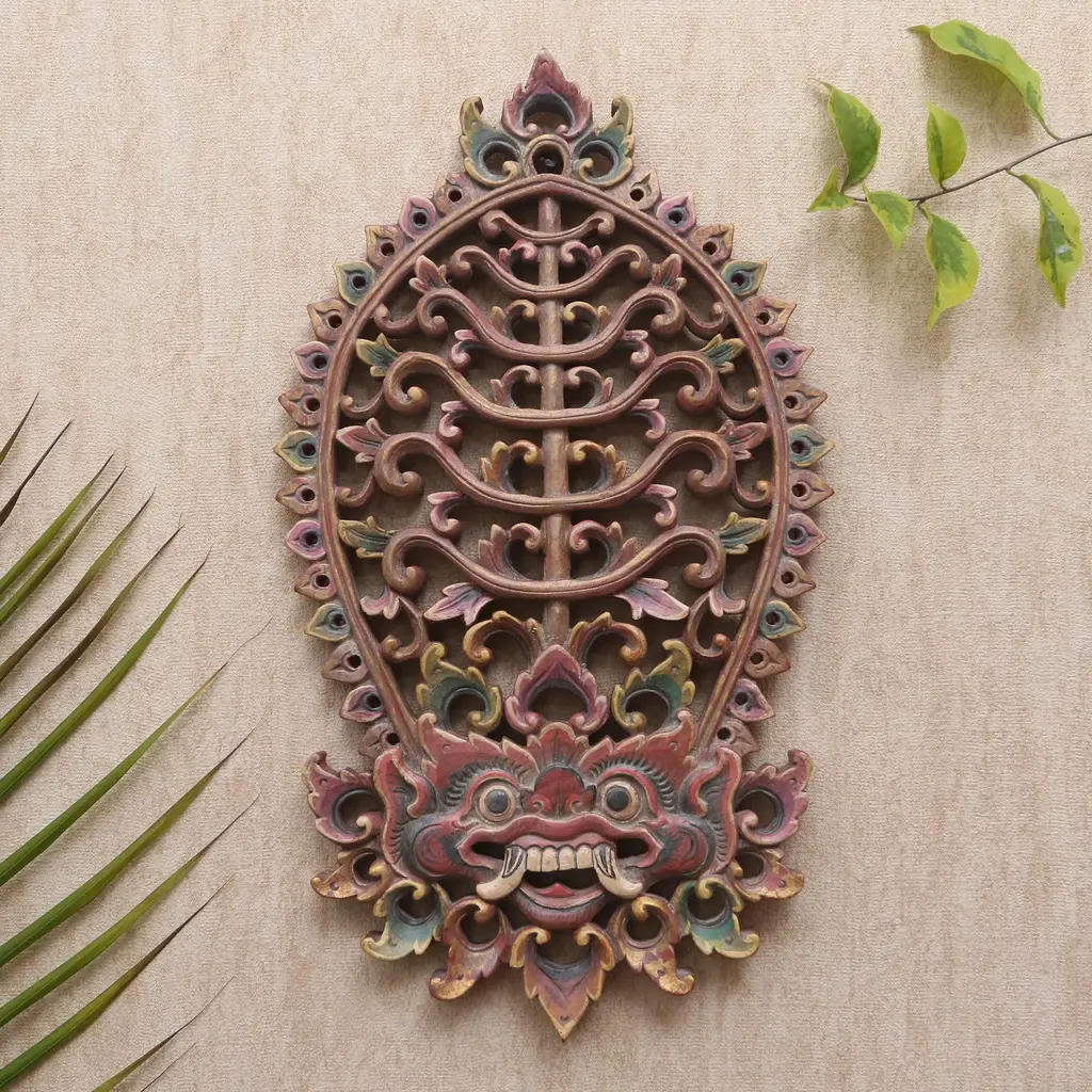 With a striking om symbol right at the center, this colorful relief panel designed by Ketut Sudantara will keep you calm and balanced. The Balinese artisan hand carves the symbol from local suar wood, fashioning a lotus flower frame that shimmers with golden gilt.
